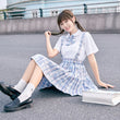 Material: Cotton, Spandex Decoration: Bow Silhouette: A-LINE Pattern Type: Plaid Style: Preppy Style Dresses Length: Above Knee, Mini Season: Summer Style: Casual, Preppy, College, HarajukuPackage Includes: