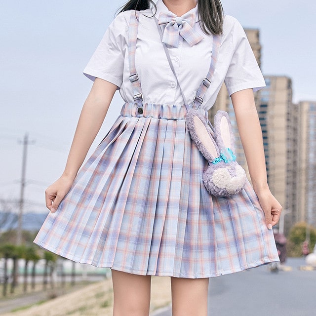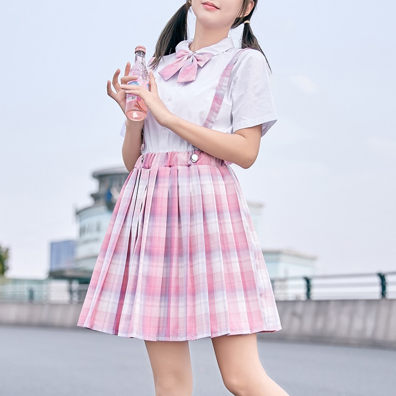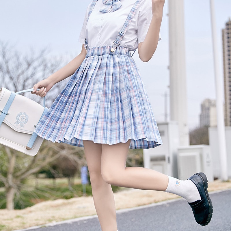 Looking for a sweet and stylish way to show your school spirit? Check out our Japanese School Girl Suspender Skirt! This Kawaii skirt is perfect for summer, with a high waist and light pleating. The suspenders are adjustable and make it easy to wear whatever type of top you want underneath. Whether you're dressing up as a school girl for cosplay or just looking for something fun to wear, this skirt is sure to please!