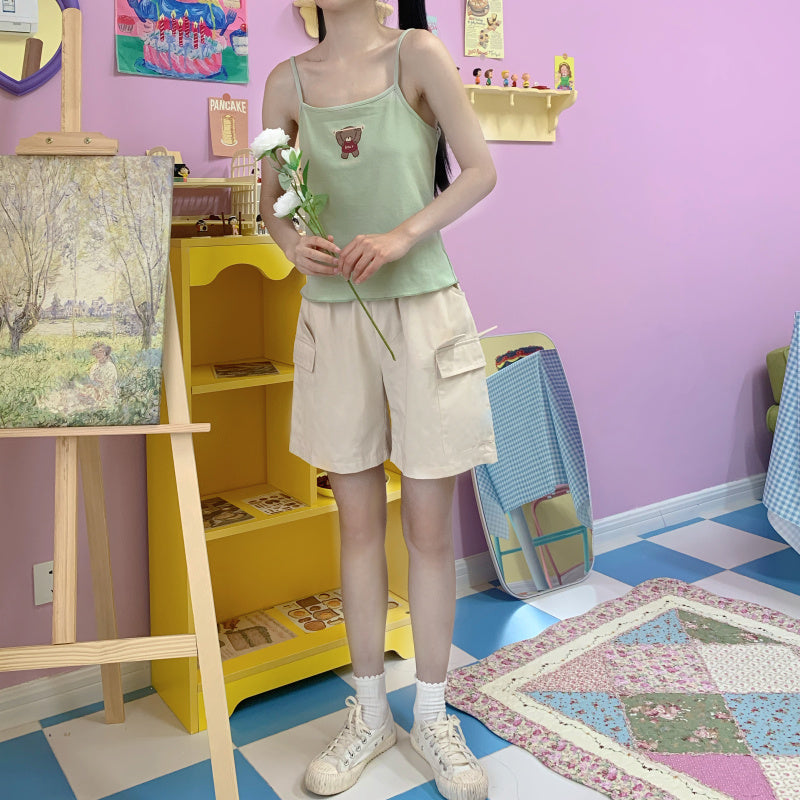 Japanese soft girl style solid color Tank Tops