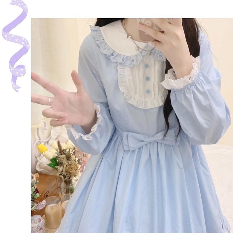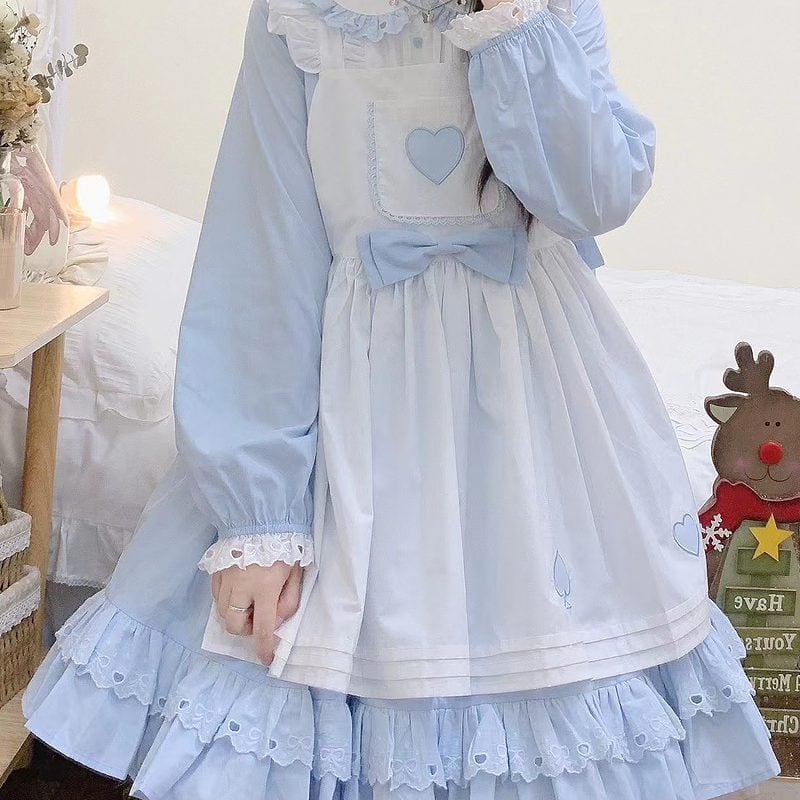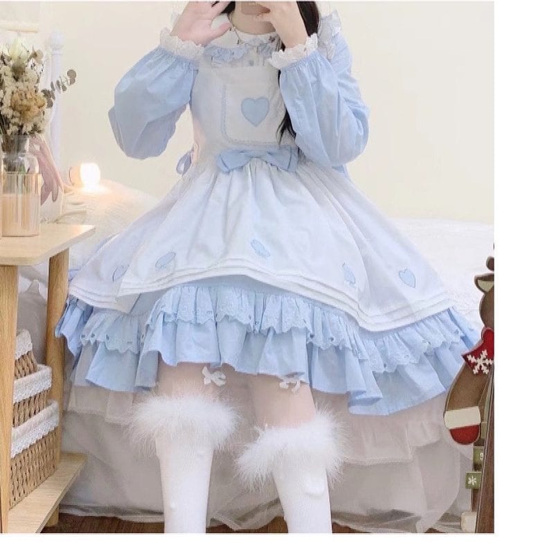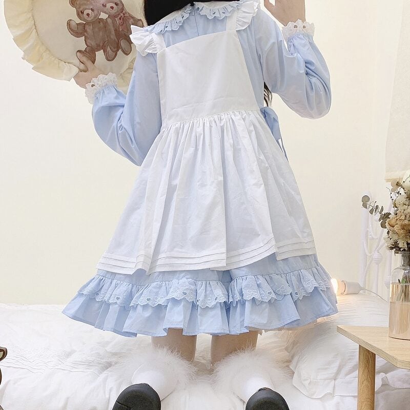 Looking for something unique and adorable? Check out our Kawaii Blue Alice Doll Collar Lolita Dress Set! This two-piece set includes an Alice Doll Collar Apron and Long Sleeve Autumn Embroidered Lace dress. It's perfect for dressing up any outfit, and is sure to put a smile on your face!