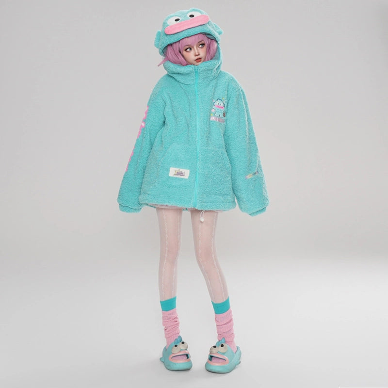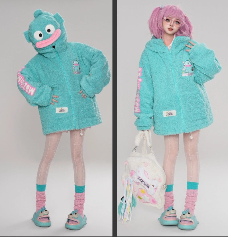Kawaii Blue Hangyodon Hooded Plush Coat