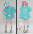 Style: Sweet, Japanese Clothing Style: Loose Popular Elements/Crafts: Embroidery Hooded or Not: Hooded Fabric Material: Polyester Pattern: Hangyodon Size: S, M, L, XL Color: BluePackage Includes: