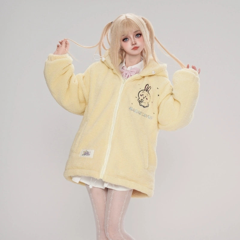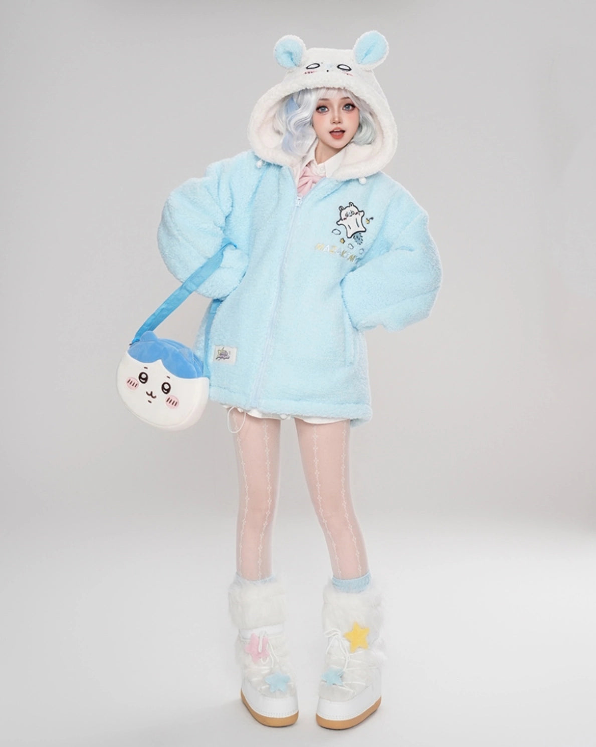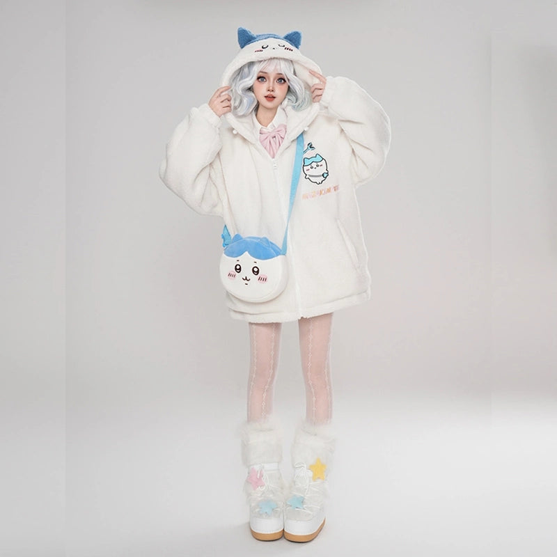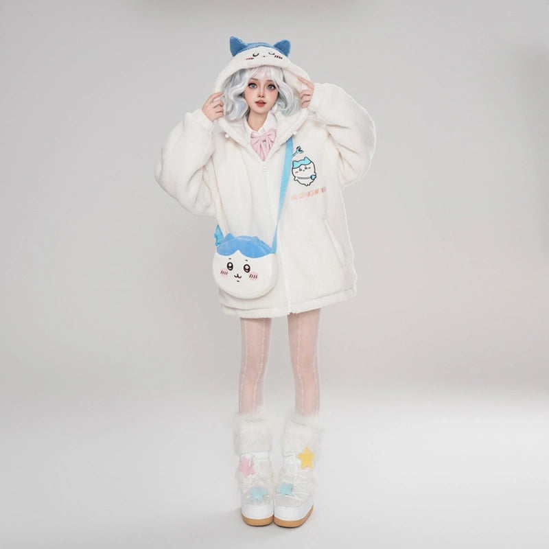 Kawaii Cartoon Chiikawa Plush Hooded Coat