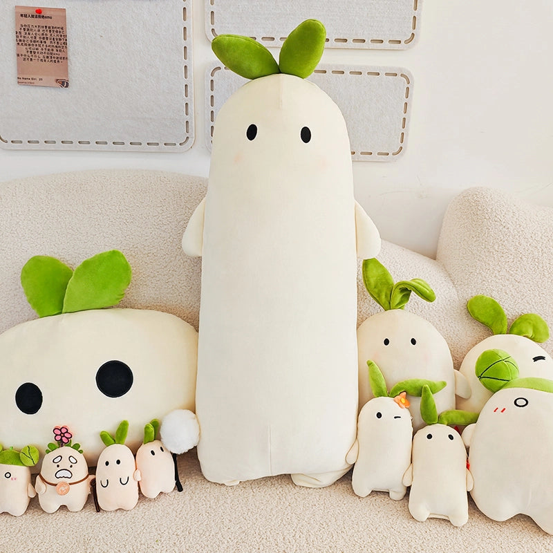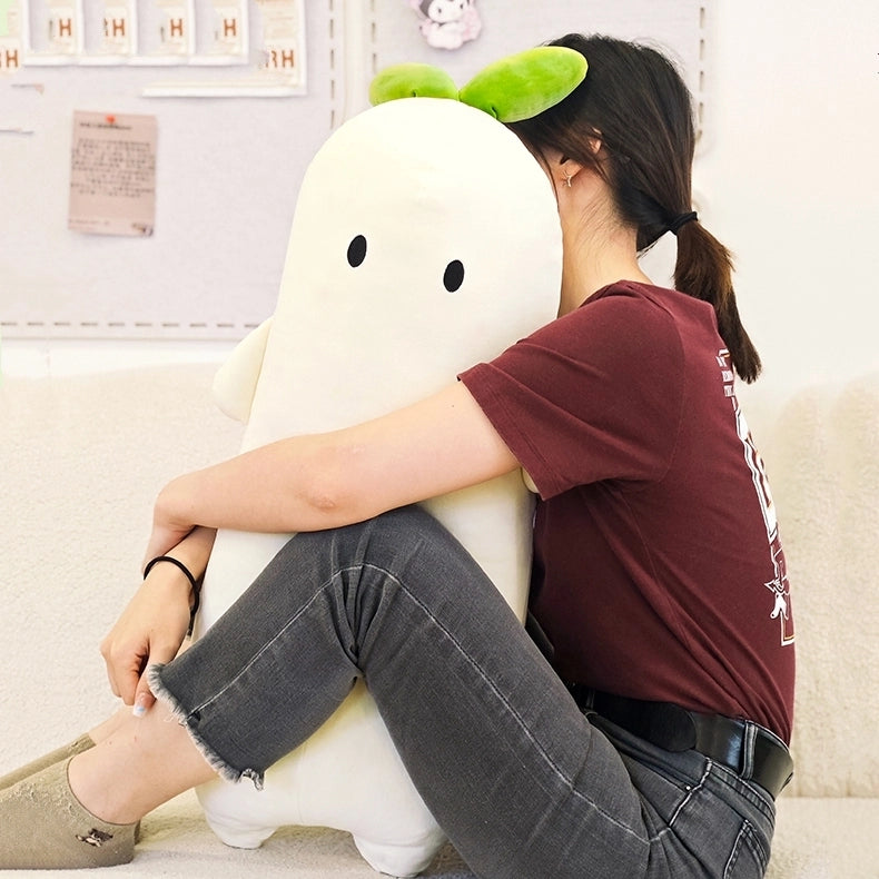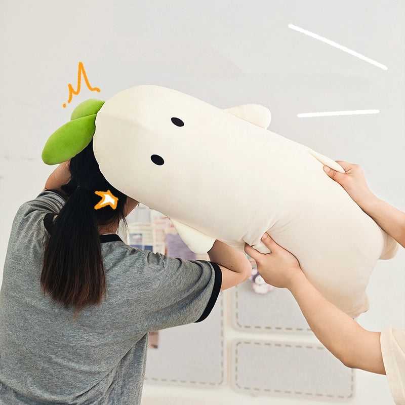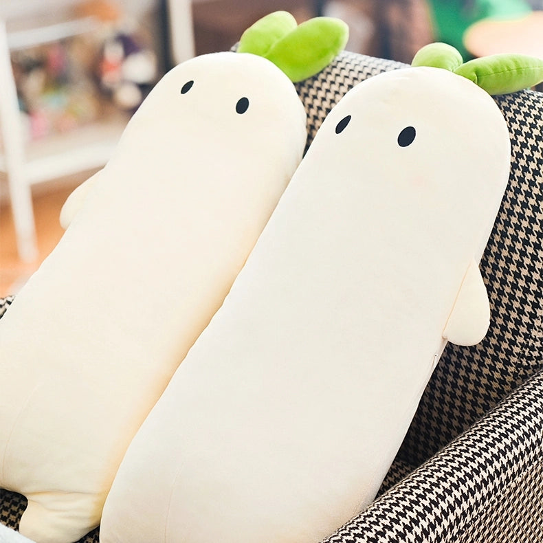 Kawaii Radish-Shaped Pillow: Snuggle into comfort with this cute 80 cm pillow! Perfect for relaxing or sleeping with your legs crossed. Get yours today!