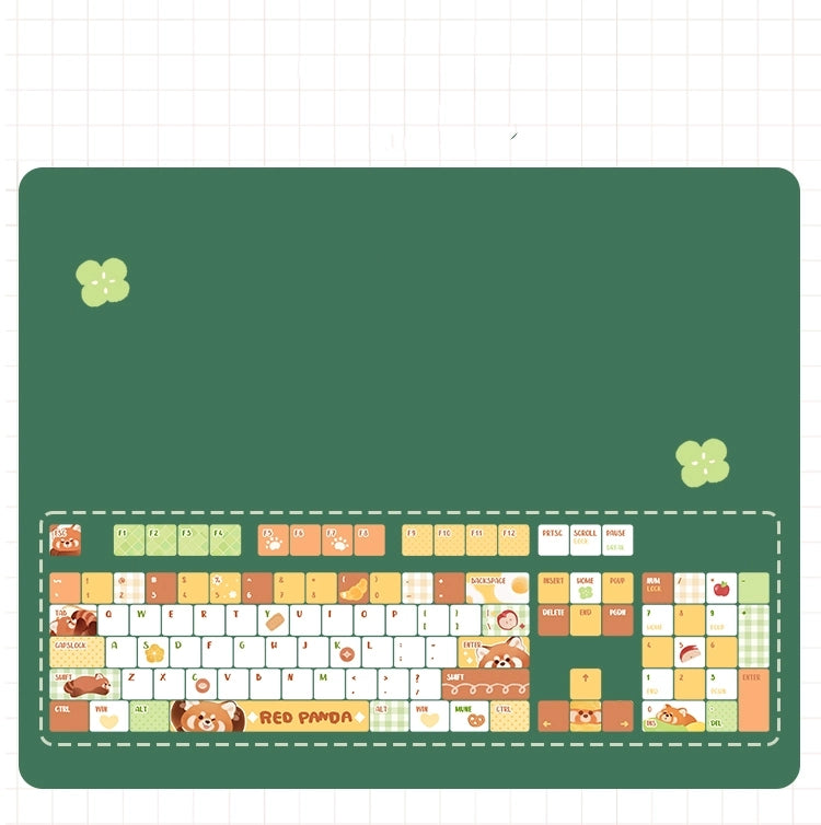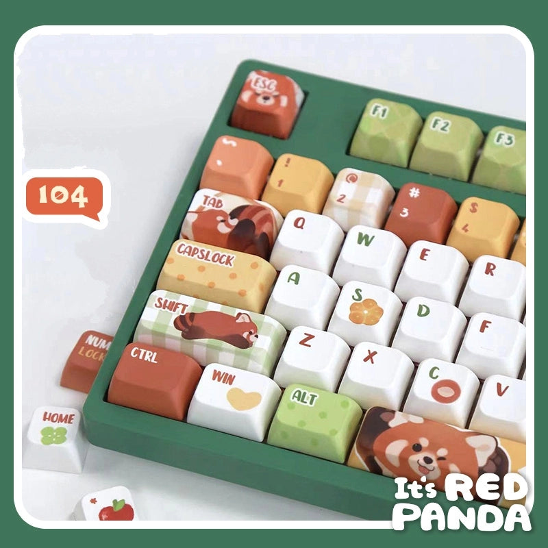 Theme: Red Panda and His Apple Paradise Specifications: XDA Height Craftsmanship: Five-sided Dye-Sublimation Quantity: 104 Keycaps Packaging: Blister + Airplane BoxPackage Includes: