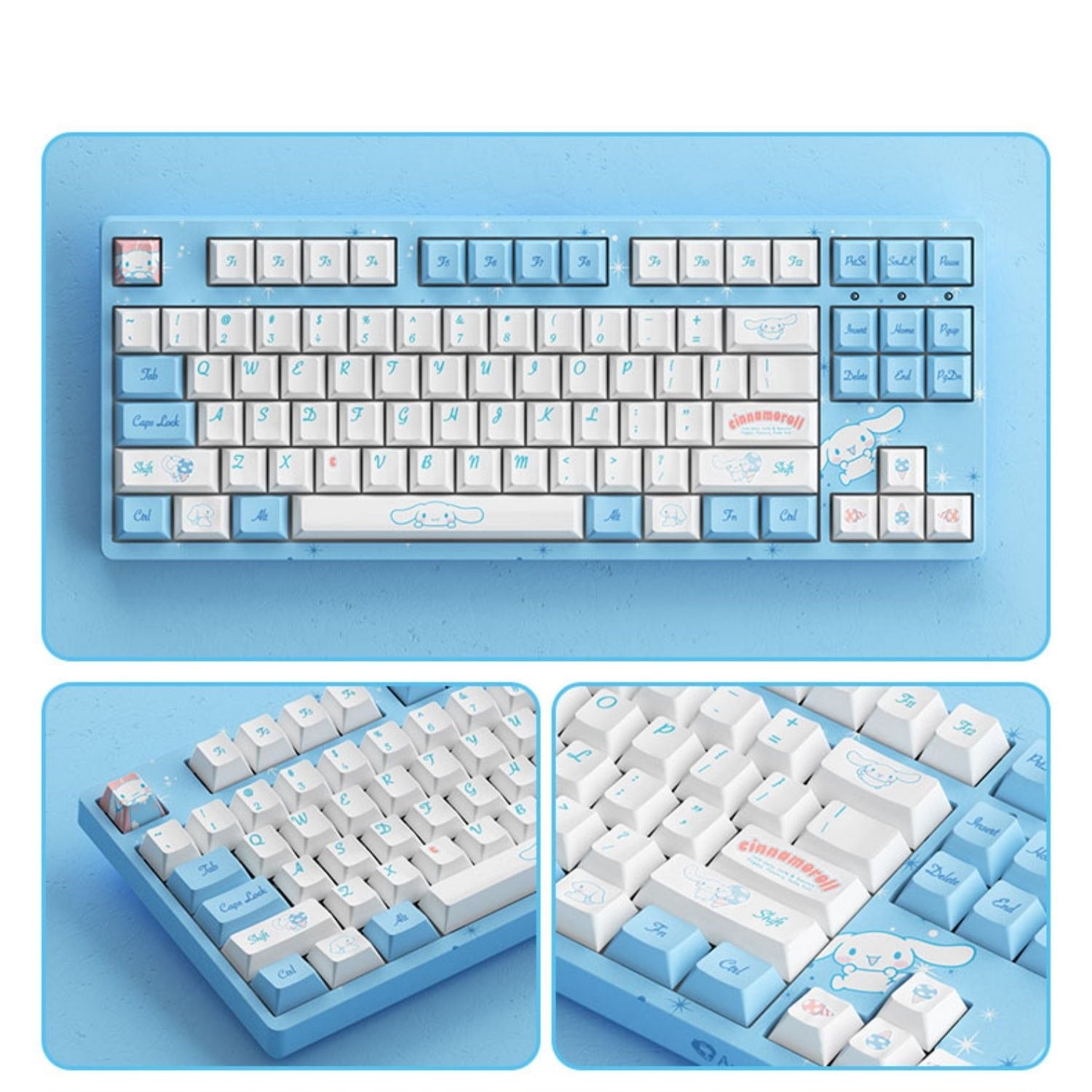 Model: New version of Cinnamoroll Is it wireless: No Connection method: USB Type-C Is it a mechanical keyboard: Mechanical keyboard Is there a multimedia function key: Yes Axis name: Sakura axis Applicable scenarios: Universal Is it ergonomically friendly: Yes Dimensions and weight are about 360*140*40mm, about o.95kg Keycap type: PBT material + thermal sublimation process Full key anti-collision: Support Packing list: key puller, power cord, manual, dust coverPackage Includes: