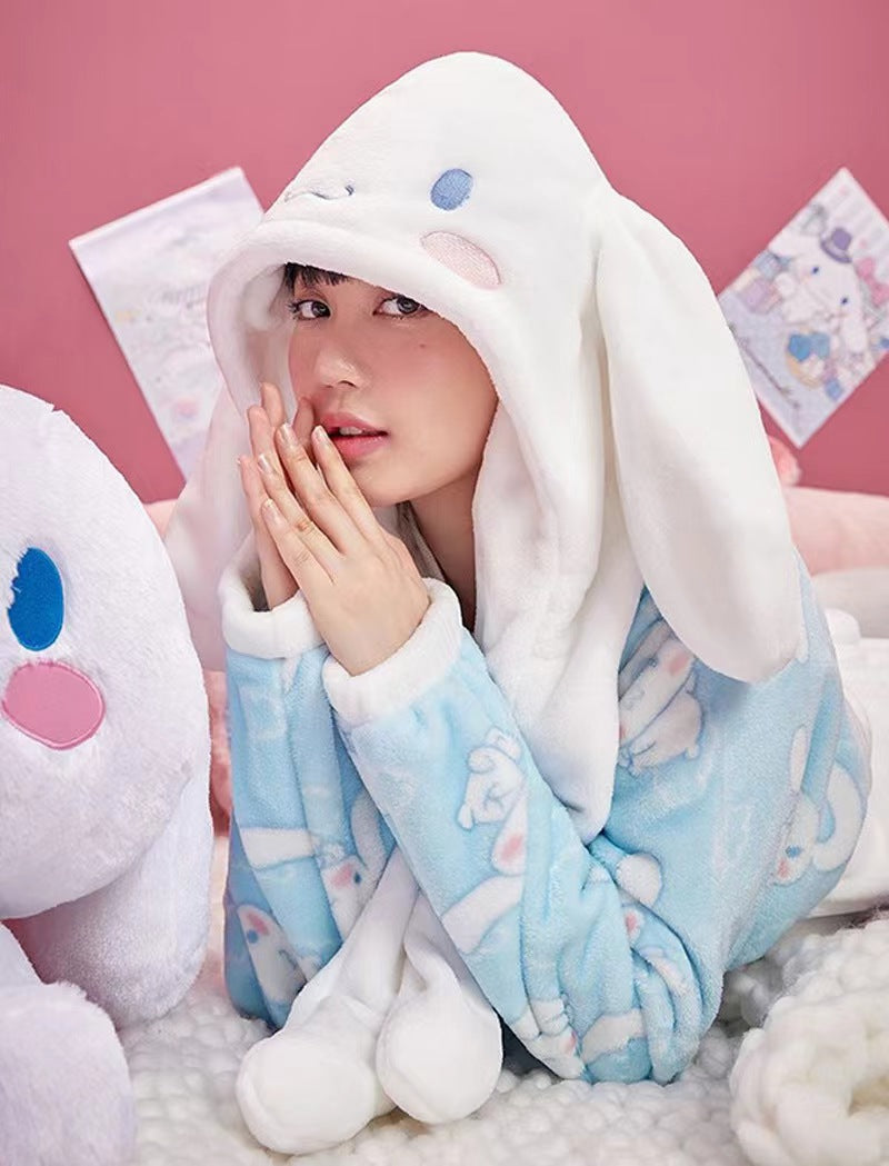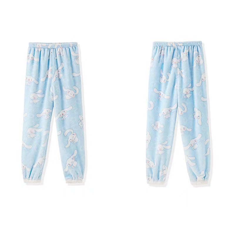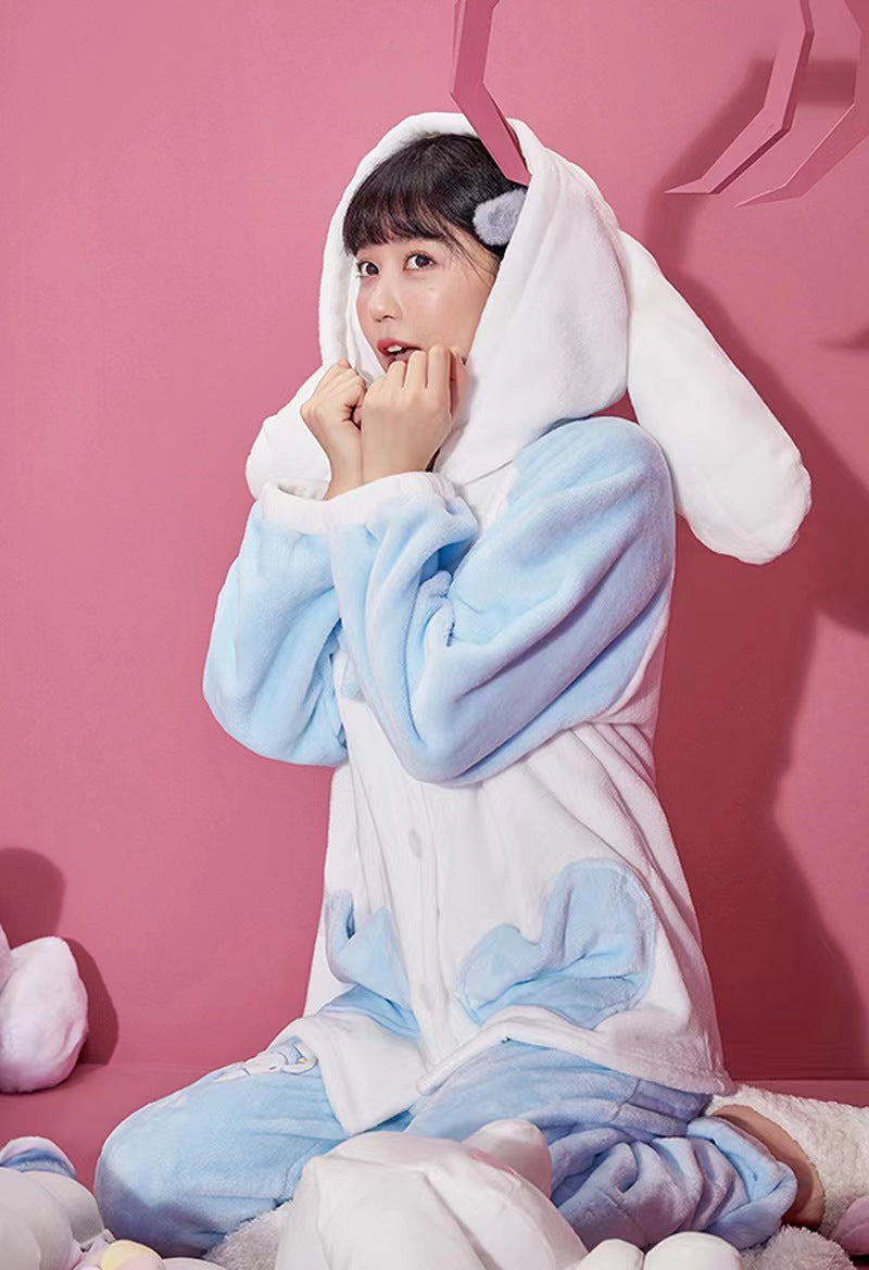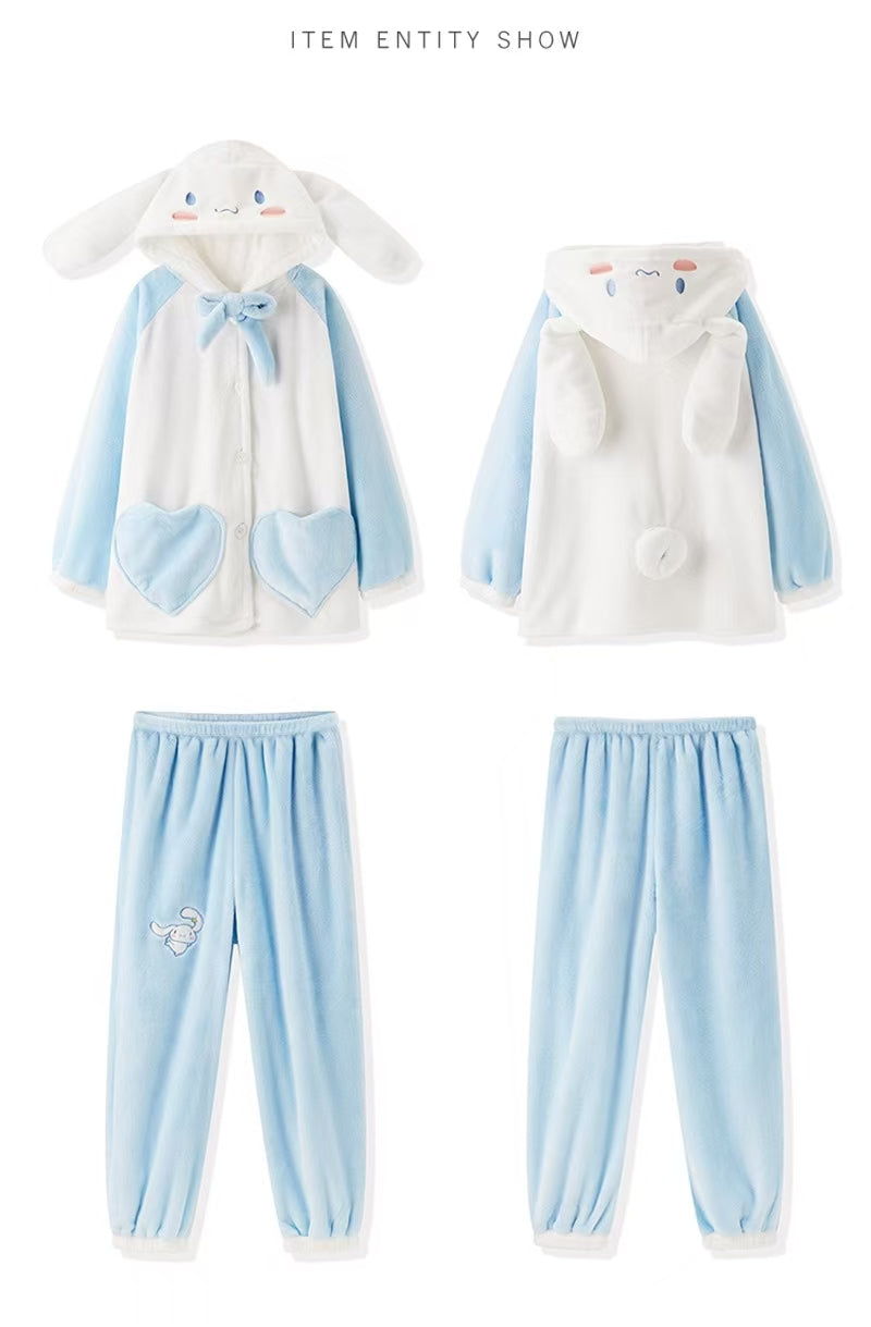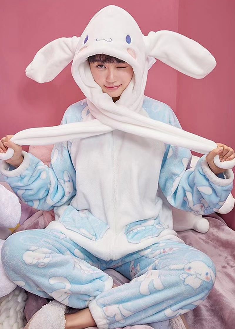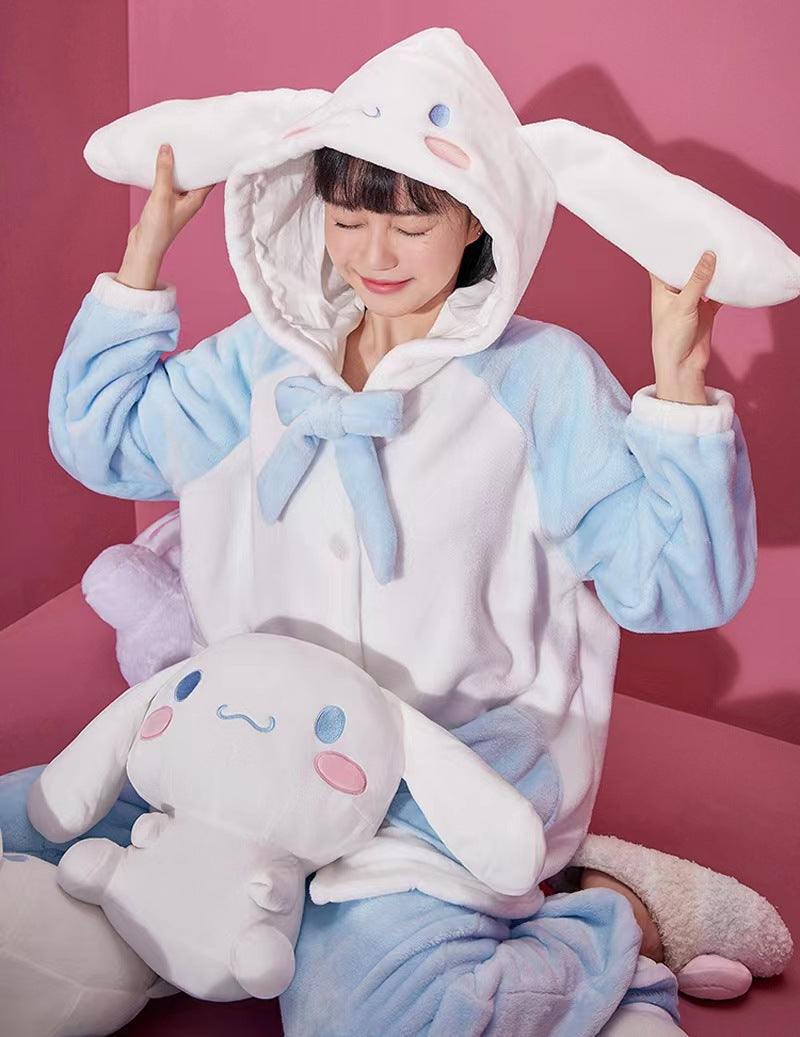 Snuggle up in these super soft and warm Sanrio pajamas this winter! Inspired by the adorable Kawaii Cinnamoroll, these Kawaii Pajamas are perfect for lounging around the house in style. The set includes a button-front shirt and comfy pants, in four different styles to choose from. Made of thick flannel fabric, these pajamas will keep you cozy all winter long.