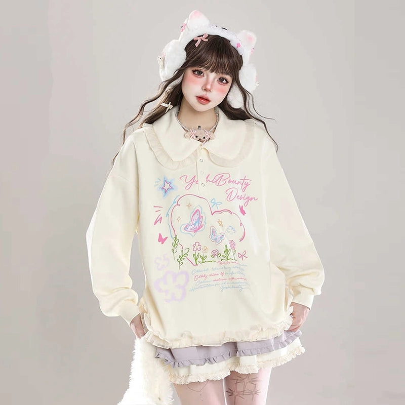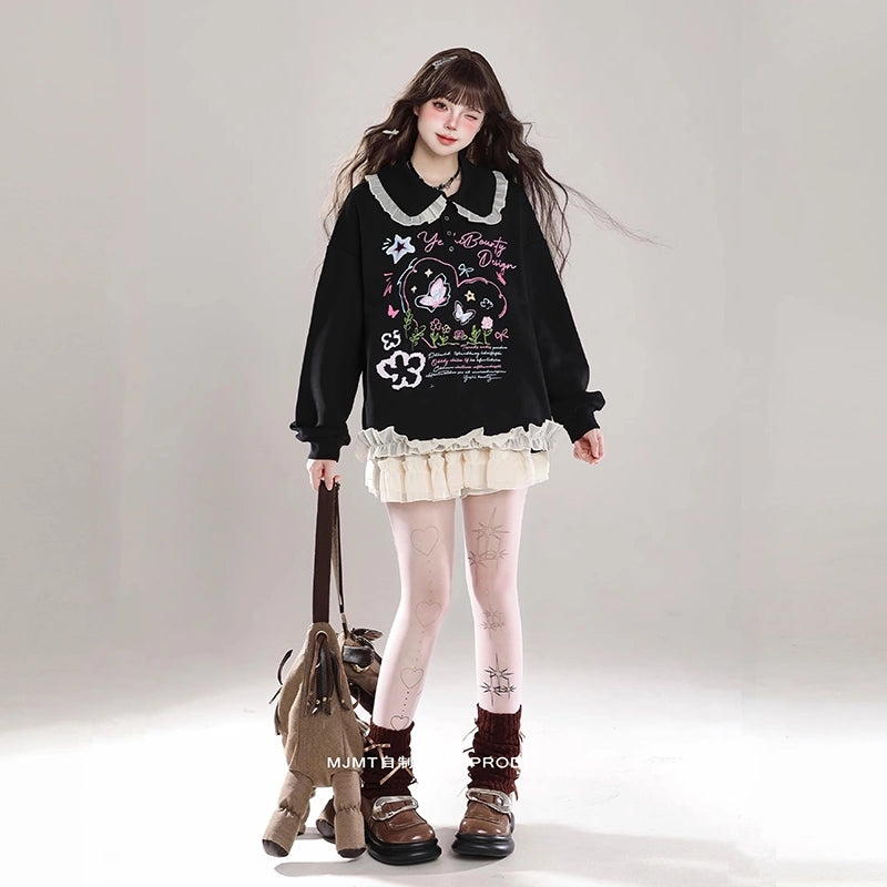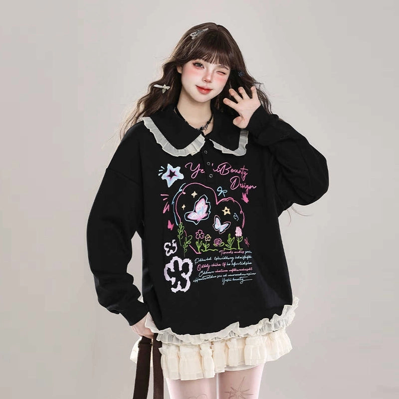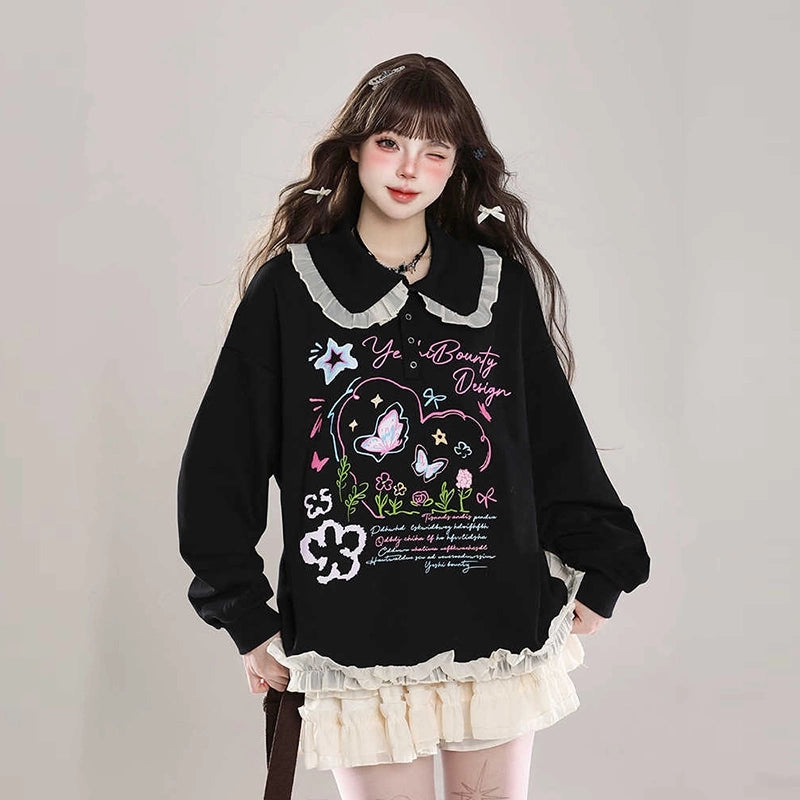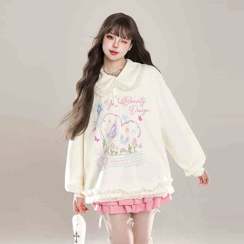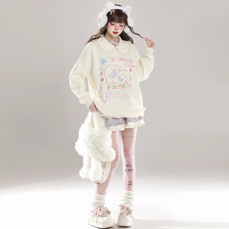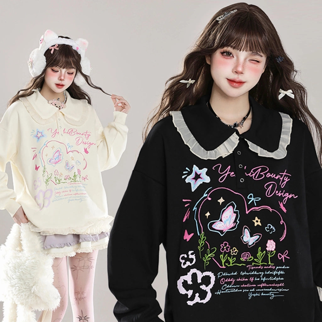 Kawaii College Style Lace Doll Collar Sweatshirt