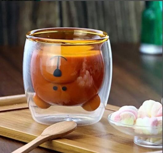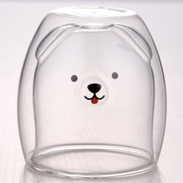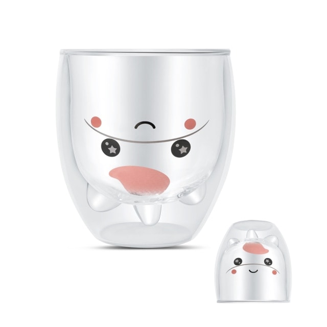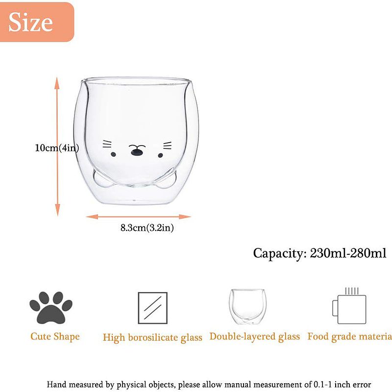 Happy Bear 8.3cm(3.2in)x10cm(4in) Bear&CAT 8.3cm(3.2in)x 9cm(3.5in) Capacity:230ml-280ml Material: lead-free high-quality borosilicate-glass Shape: Bear, Cat, Happy bear, and so on