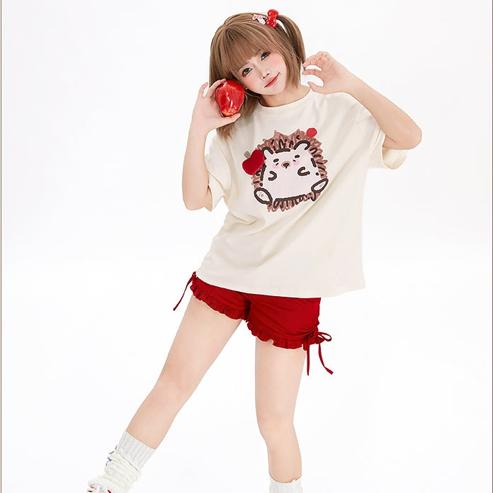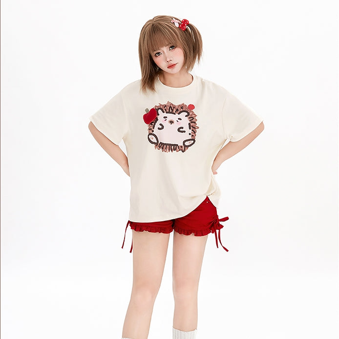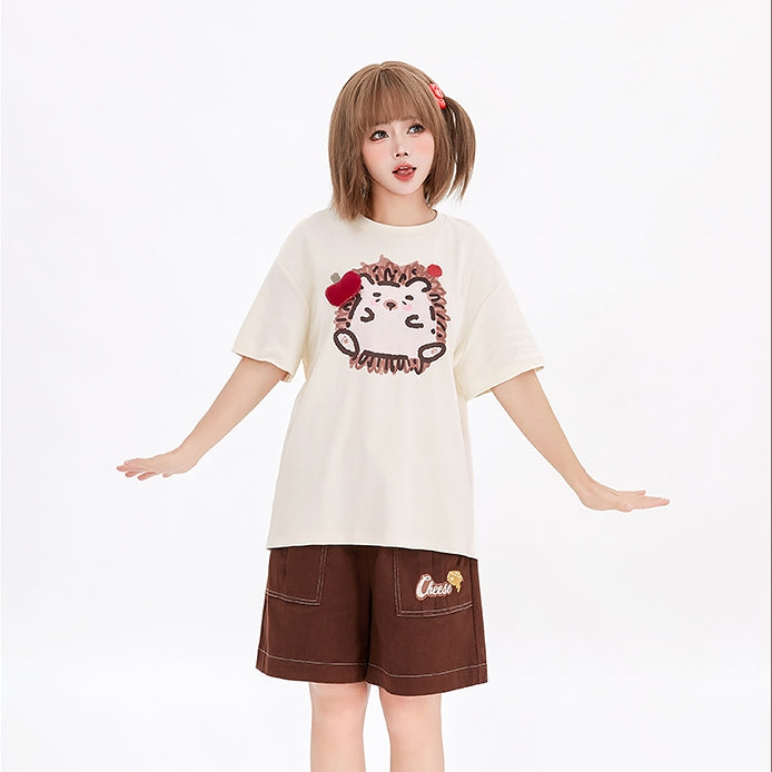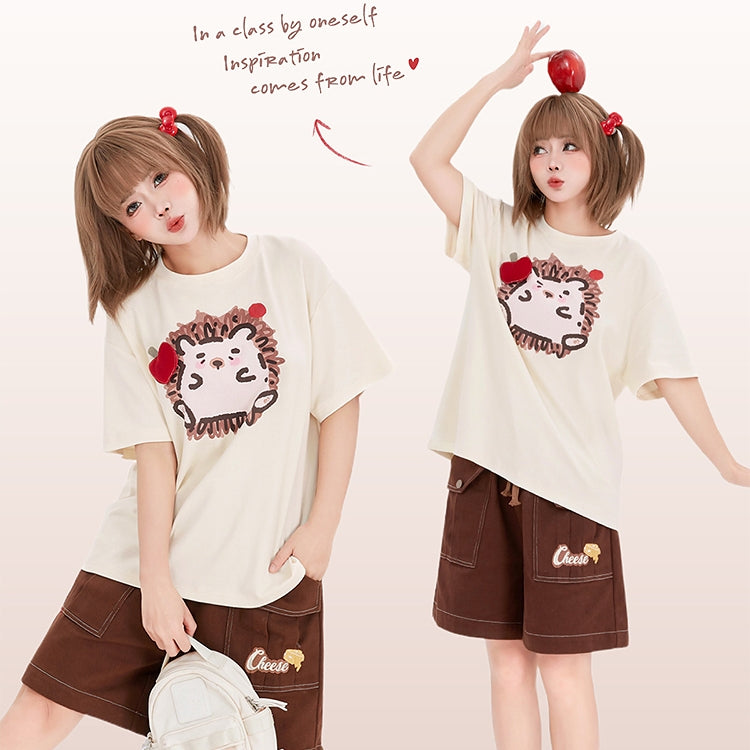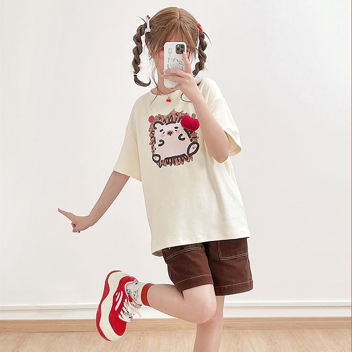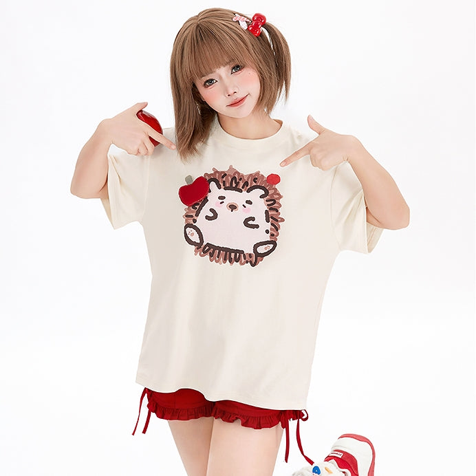 Kawaii Graffiti Little Hedgehog Print Loose T-shirt