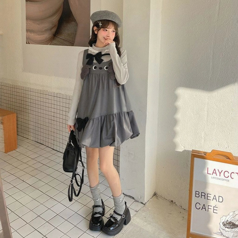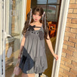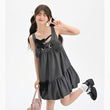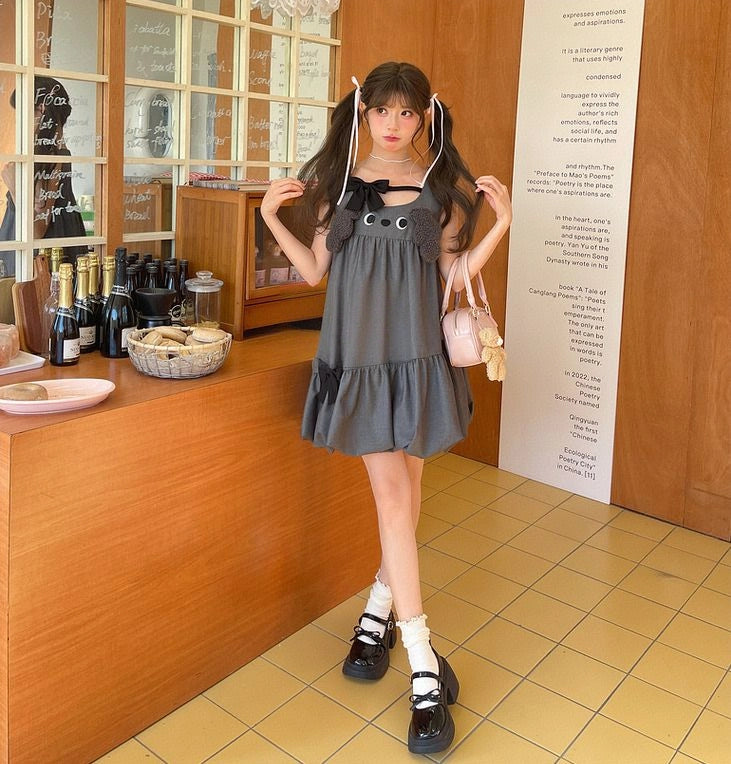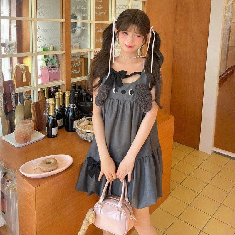 Kawaii Gray Cartoon Puppy Dress: Adorned with bows and 3D decorations, this sleeveless beauty in gray is perfect for a loose, comfy summer style.
