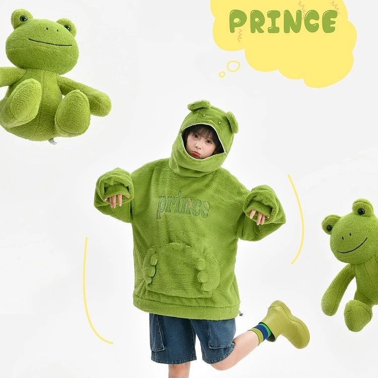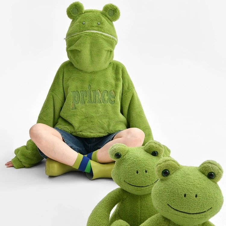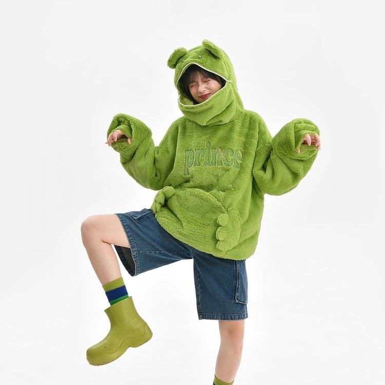 Kawaii Green Frog Plus Fleece Hooded Sweatshirt