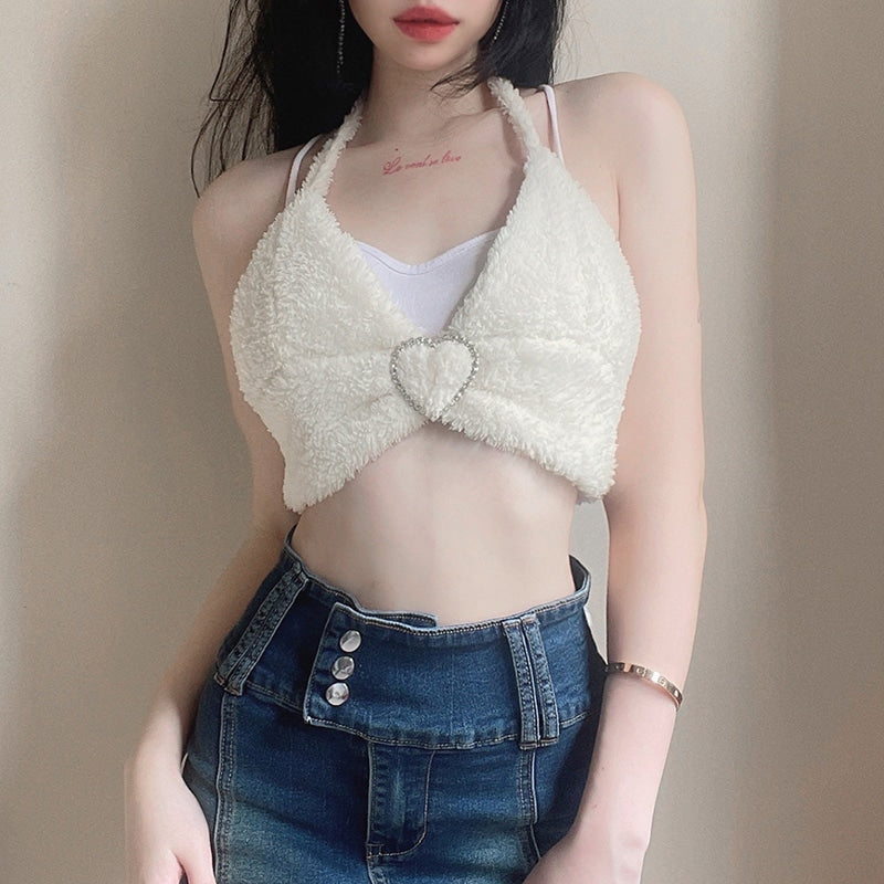 This halter camisole corset top is the perfect sexy addition to your summer wardrobe! Made from fashion shaggy faux fur, it's soft, comfortable, and stylish. The halter neck straps and backless design are perfect for showing off your curves, while the lace-up front provides a bit of extra sexy detail. And who could resist those adorable pink hearts on the front? Add these Crop Tops to your wardrobe today and enjoy looking and feeling amazing!