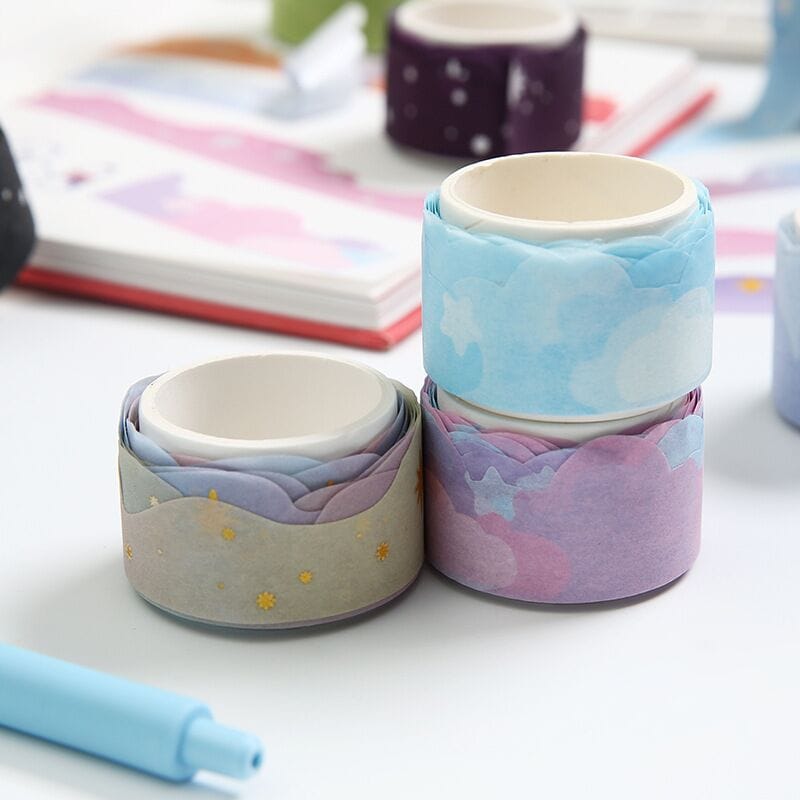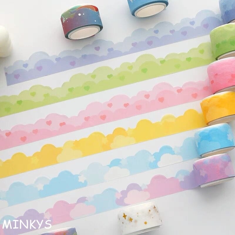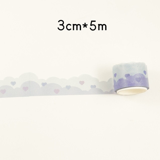 This Kawaii Heart Cloud Adhesive Tape is perfect for all your crafts and stationery needs. The cute heart cloud pattern is perfect for scrapbooking, journaling, or just dressing up your desk. The Adhesive Tape is also great for school projects and repairs. It's sturdy and won't tear easily, but it's also easy to remove when you're done.
