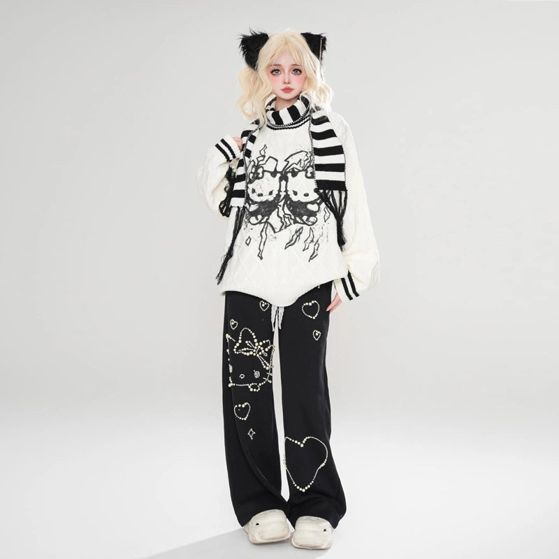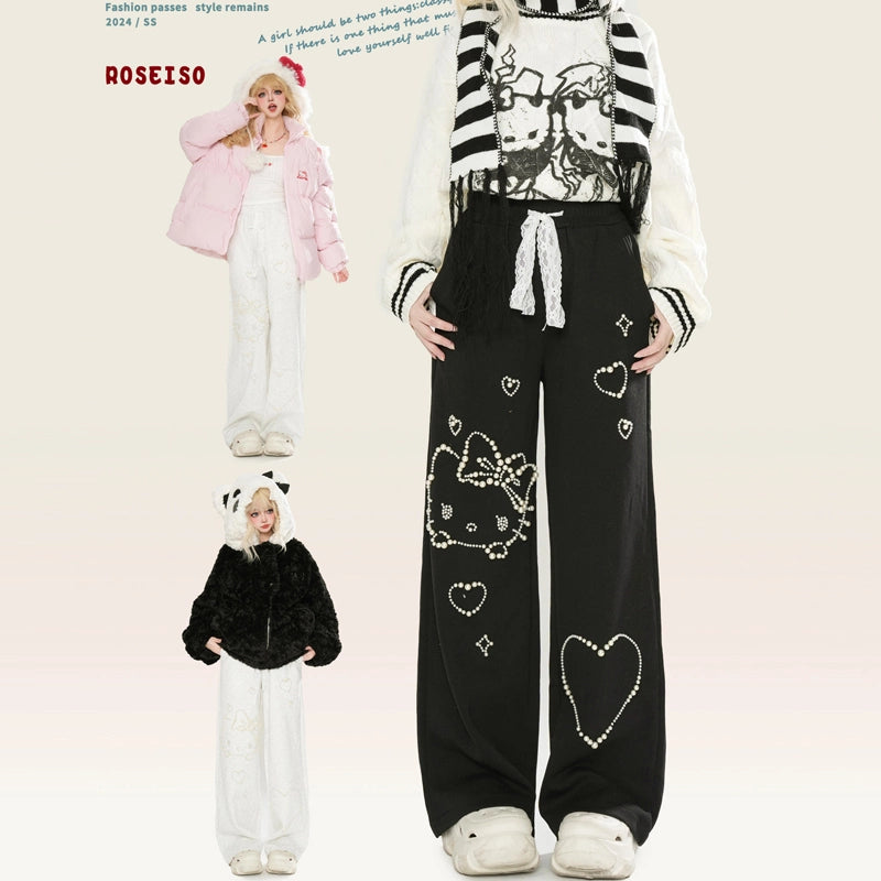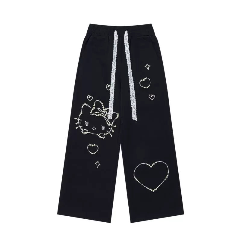 Kawaii Hello Kitty Embroidered Straight Jeans