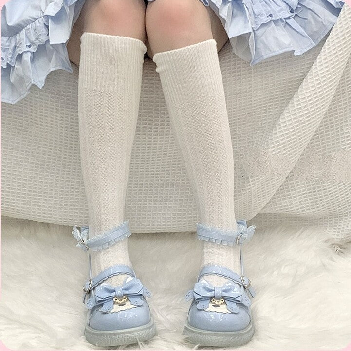pattern: plain Style: Lolita Popular elements: Ribbons, buckles, bows, embroidery Color: black, white, blue, pink Toe style: round toe Shoe material: PUPackage Includes: