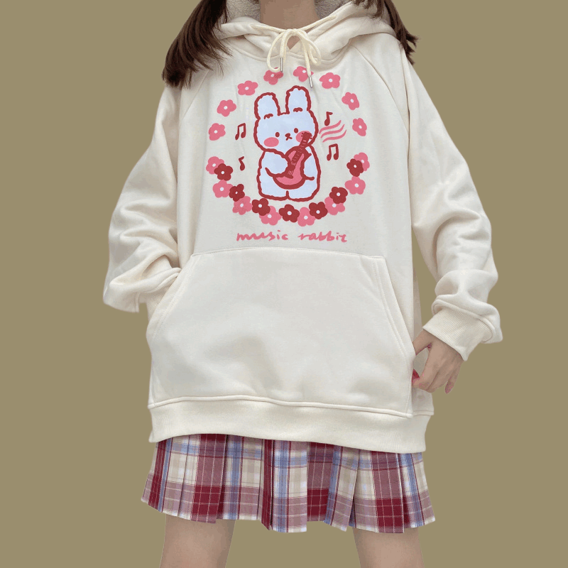 Kawaii Japanese Cartoon Rabbit Print Sweatshirt