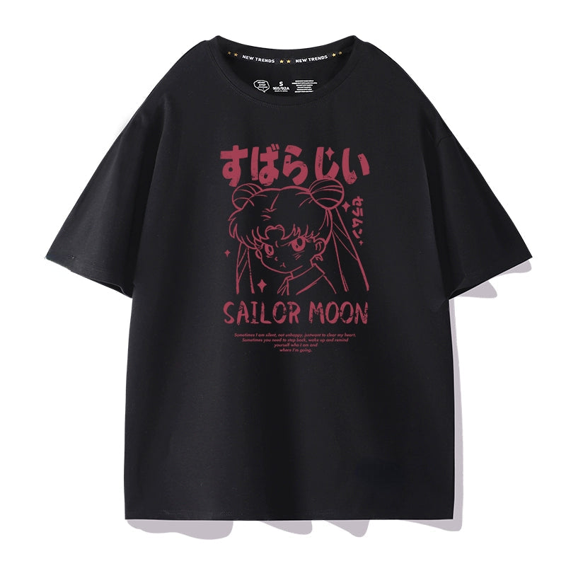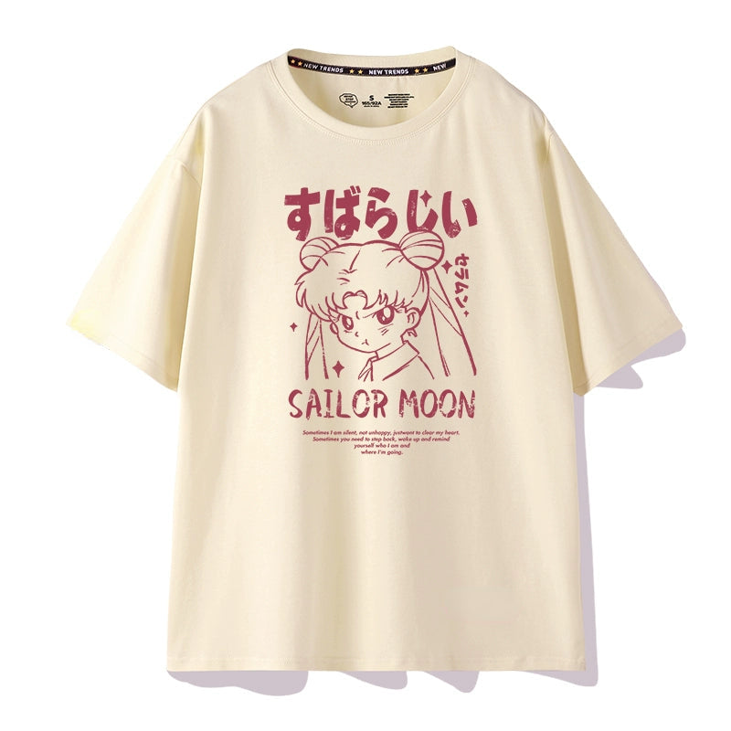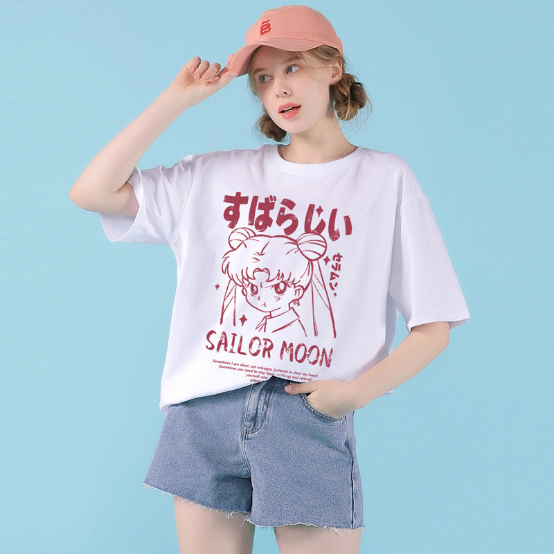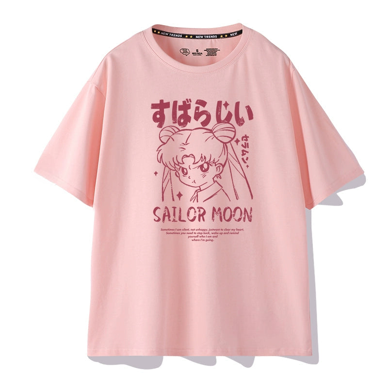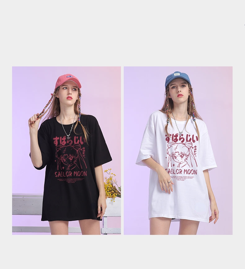 Size: XS,S,M,L,XL,XXL Pattern: Sailor Moon Style: Japanese Collar type: round neck Color: pink, white, black, light khaki, orange Material composition: 100% cottonPackage Includes: