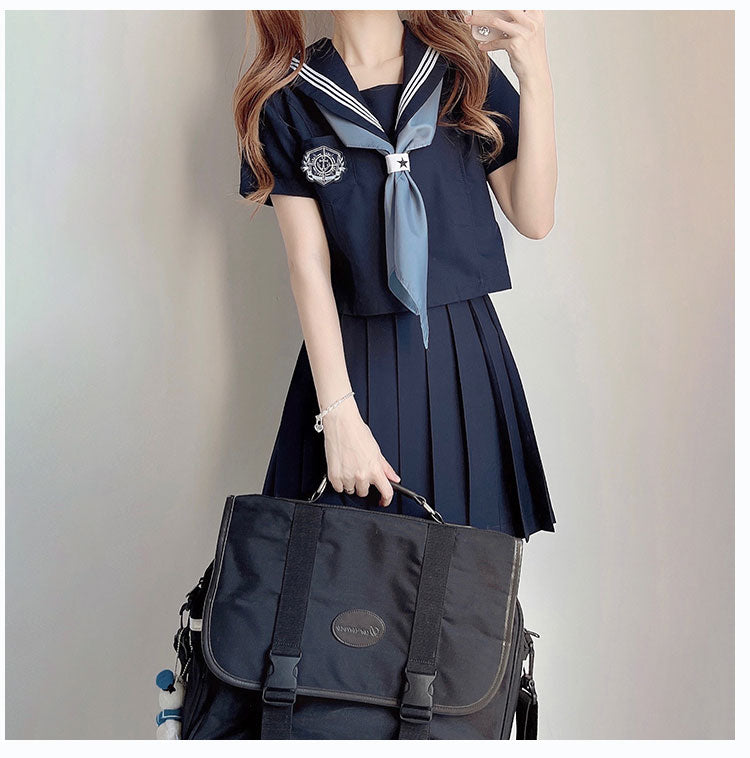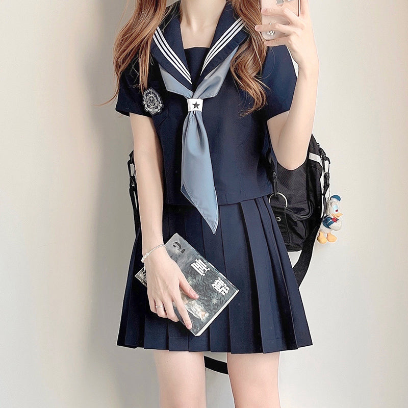 Material: Polyester Size: XS, S, M, L, XL, XXL Style: Japanese Style: Skirt,Uniform,sailor Color: Blue Applicable season: All seasonsPackage Includes: