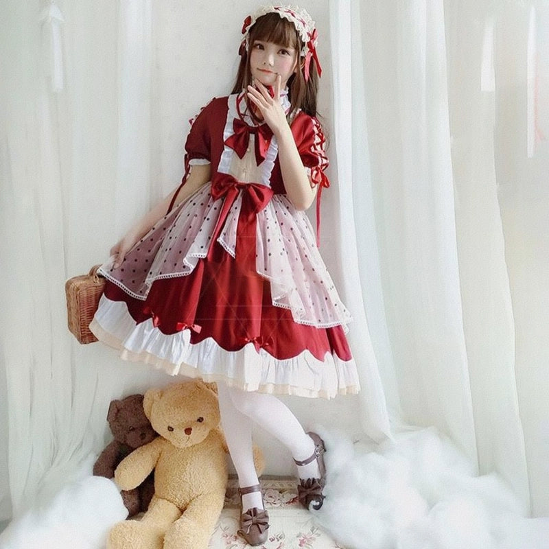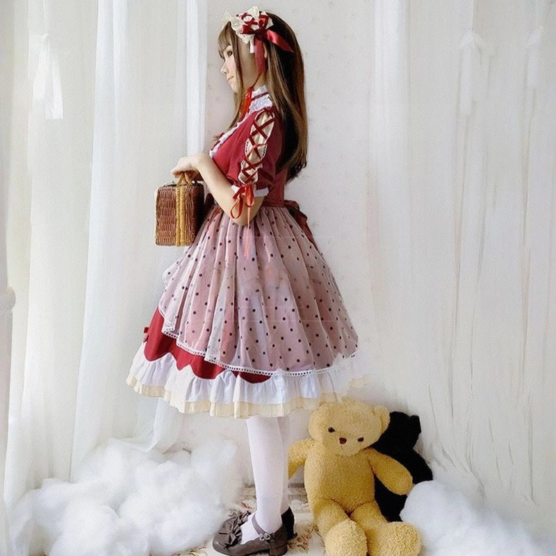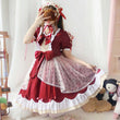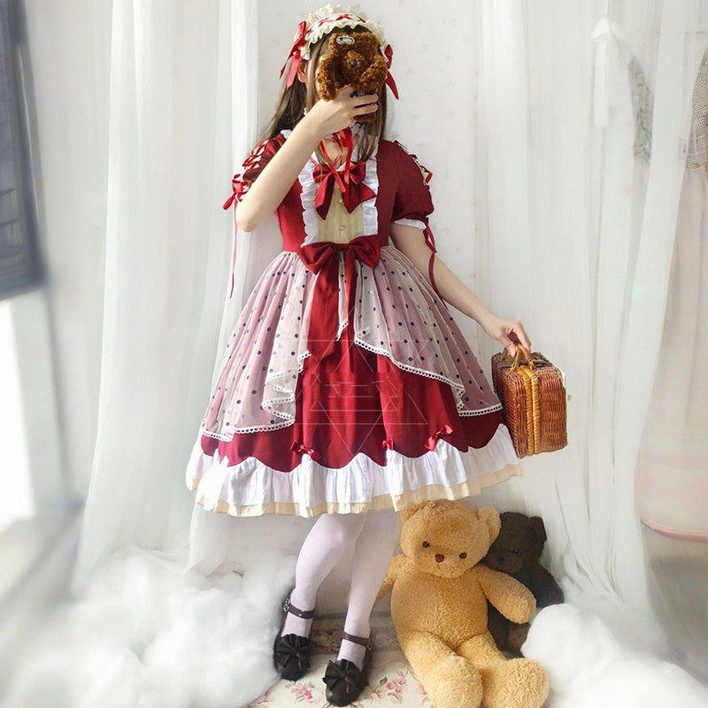 Kawaii Japanese Wine Red Lolita OP Dress Set
