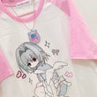 Kawaii Jirai Kei Style Pink Cartoon Print T-shirt