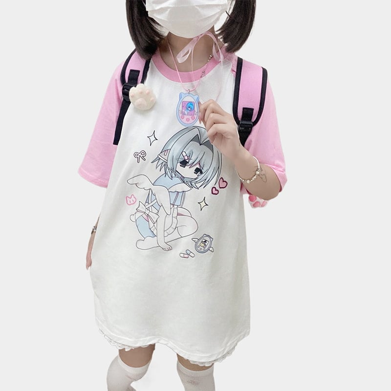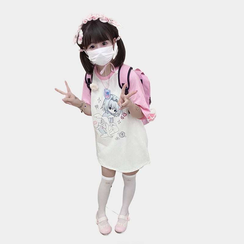 Elevate your style with our enchanting Kawaii Jirai Kei Style Pink Cartoon Print T-shirt! Crafted from original pure cotton, this delightful t-shirt features a charming landmine series print in soft pink hues. The raglan sleeves add a touch of uniqueness, perfect for any otaku or two-dimensional lover. Complete with an adorable necklace accessory, this sweet style is ideal for the summer season to keep you feeling cool and stylish. Embrace the comfort of short sleeves and a round neck collar that are both trendy and practical. Available in sizes M and L, get ready to stand out in the crowd with this lovely pink tee.
