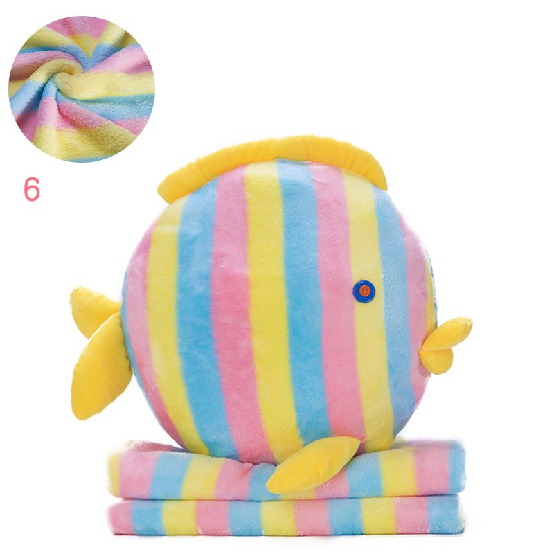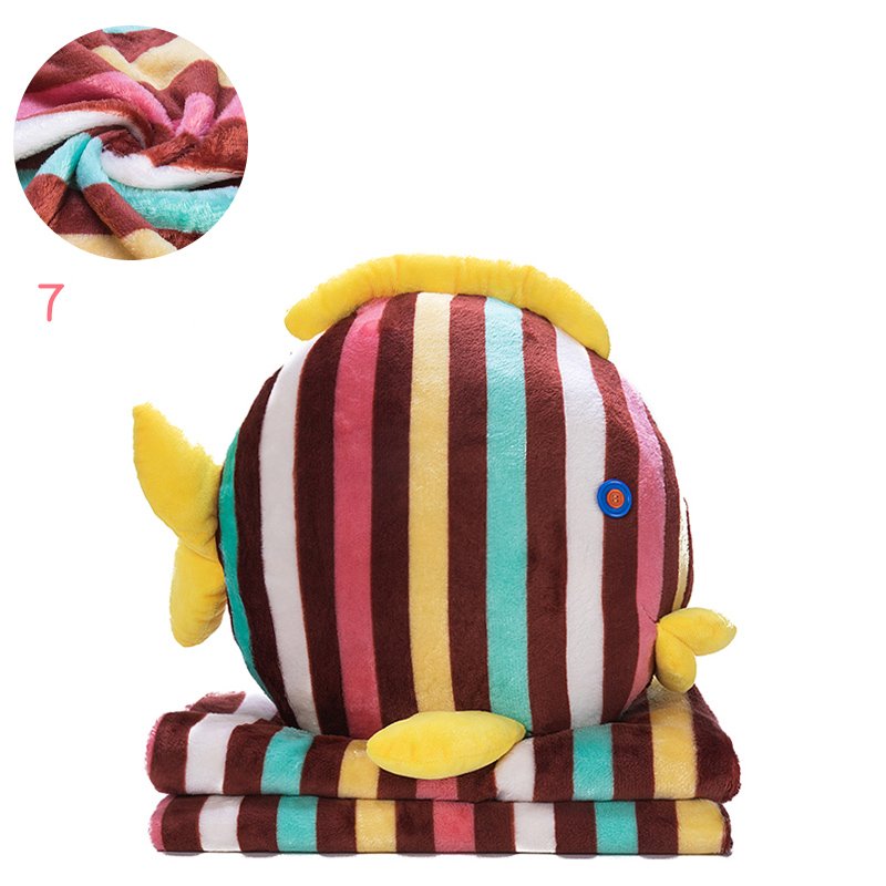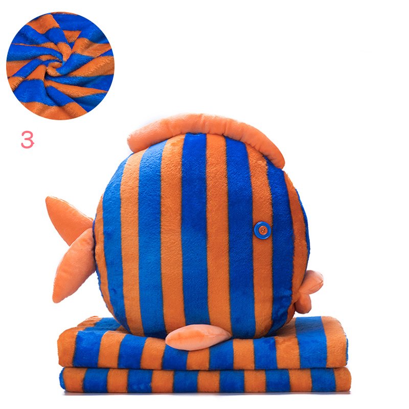 Product name: clown fish multifunctional pillow blanket Product fabric: soft plush flannel Product filling: PP cotton Applicable season: four seasons blanket Applicable age: over 3 years old Applicable places: home, office, study Pillow size: 45x40cm Blanket size: 100×150cm There is a blanket on the pillow, which can be taken out for a nap in an air-conditioned room.Package Includes: