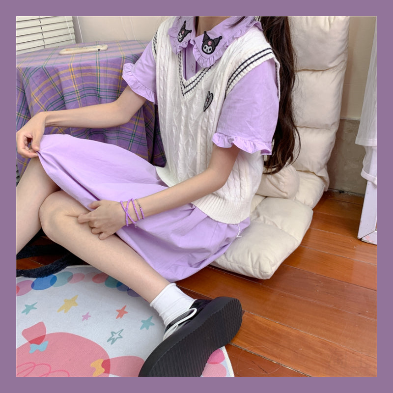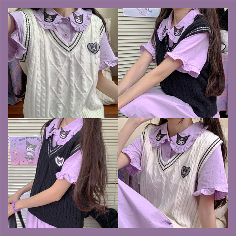 Kawaii Kuromi Sweet V-neck Knitted Vest