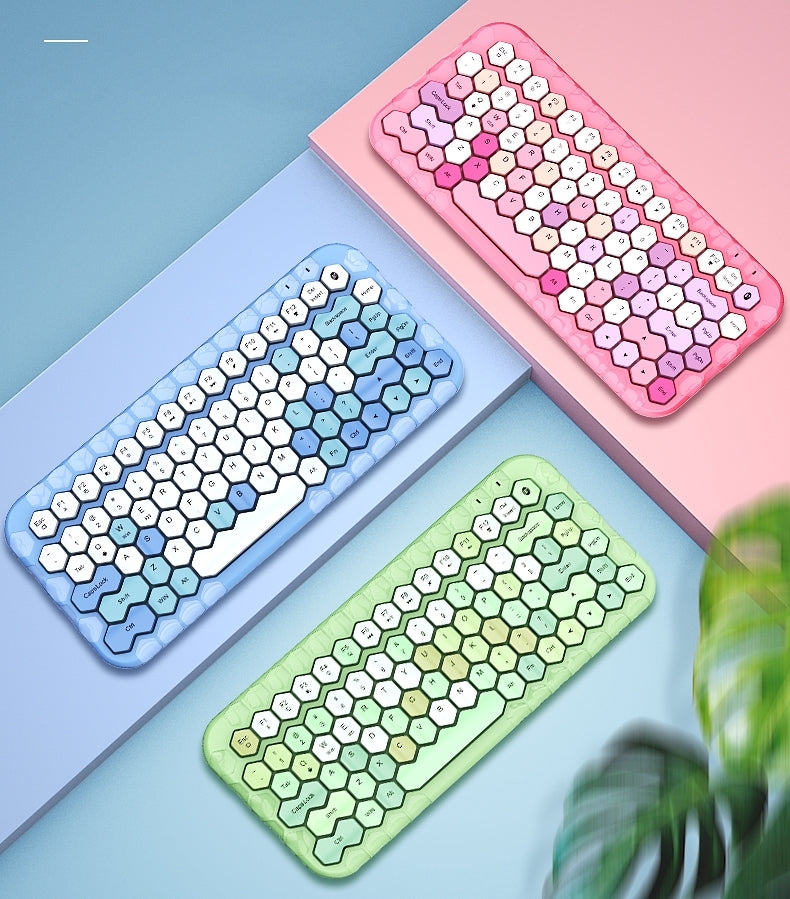Kawaii Morandi Color Honeycomb Design Wireless Bluetooth Keyboard