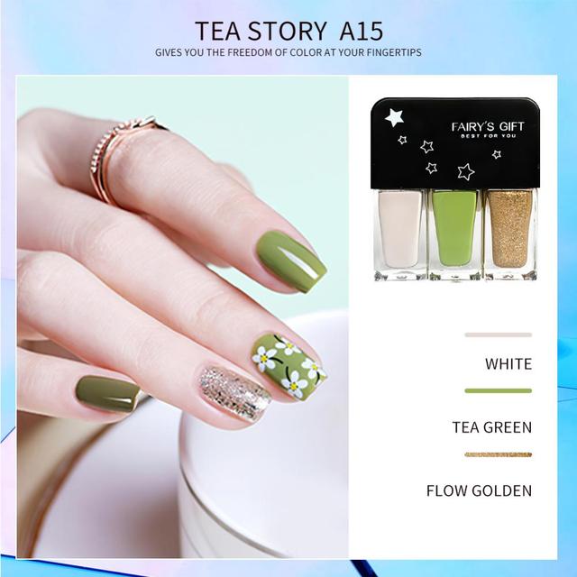 Product Name: sequins three color nail polish set Product brand: oyabun Product size: 5.5cm * 2.8cm * 6.1cm Product weight: 15gPackage Includes: