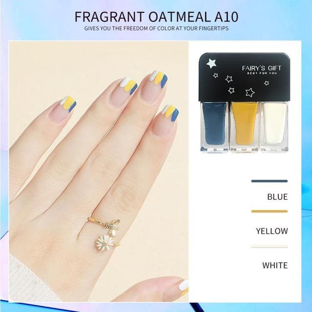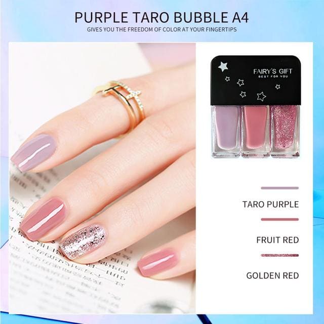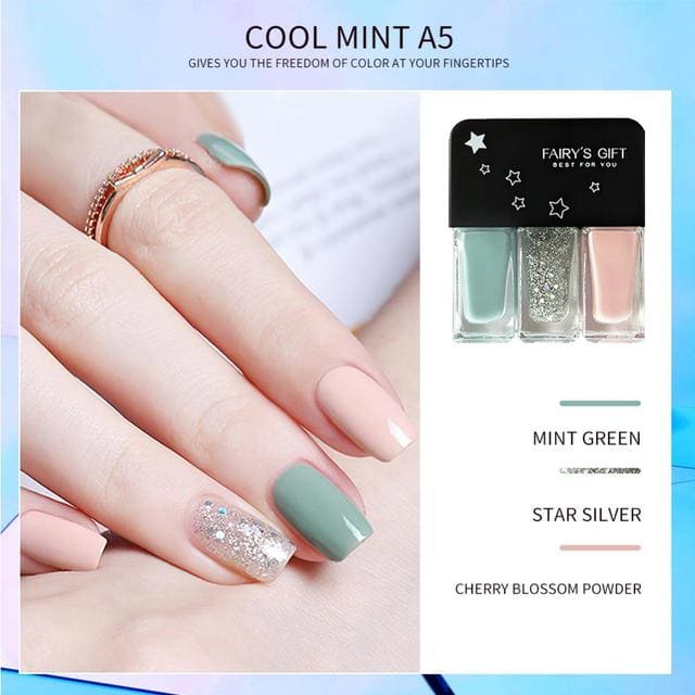 With this Cute Tri-color Glitter Nail Polish, you can have beautiful nails without having to go to a salon. This Nail Polish set comes with three bottles of polish, including one each of silver, gold, and pink. The polish is water-based and quick drying so you can get back to your day quickly. It's also non-toxic and doesn't require any baking, so it's safe for your nails.