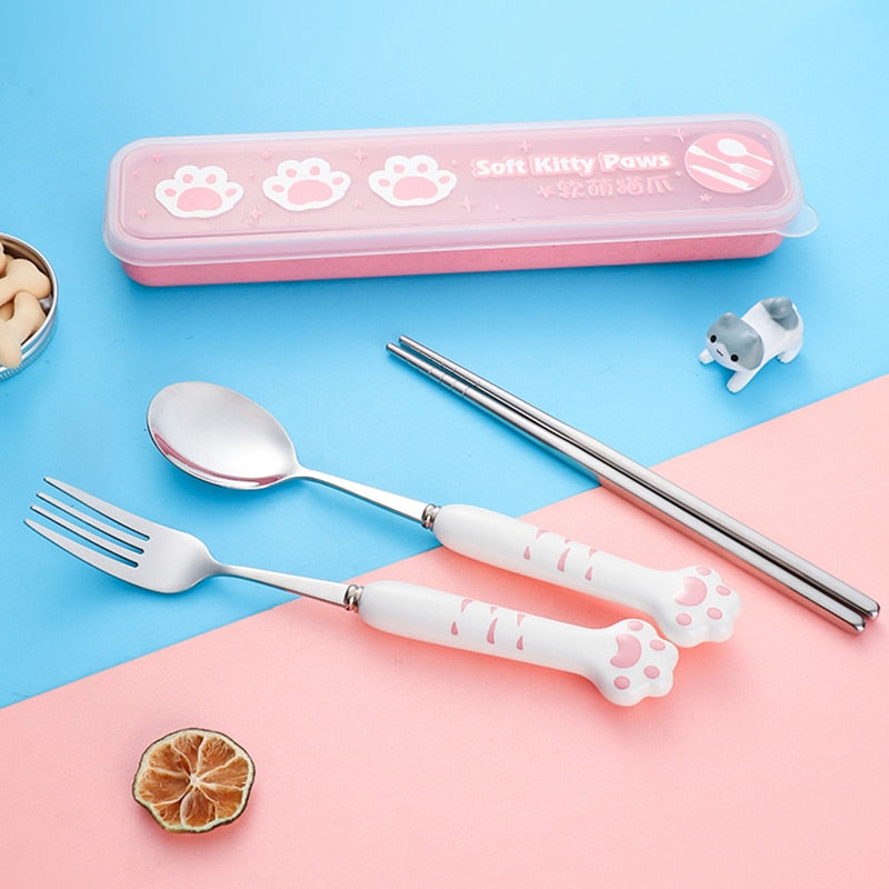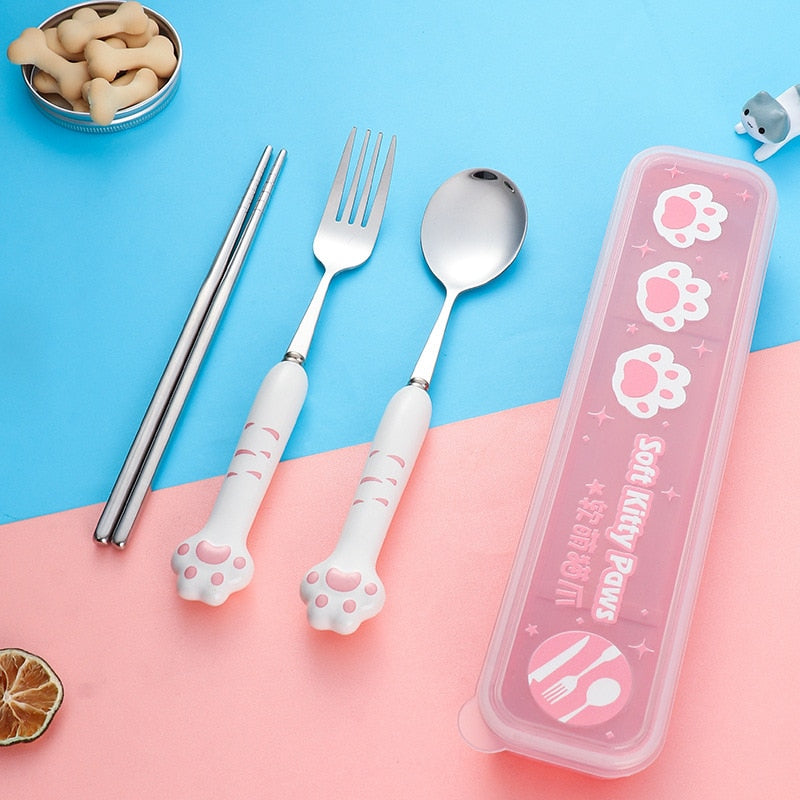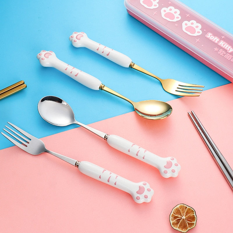 The Kawaii Paw Cutlery Set is the perfect combination of convenience and cuteness. This portable set includes a spoon, fork, chopsticks, and case – all made from stainless steel for extra durability – so you can easily take your utensils with you when traveling or camping. Not only will this handy set make mealtimes easier wherever you go - it also adds a bit of fun to your kitchen décor with its colorful paw designs!