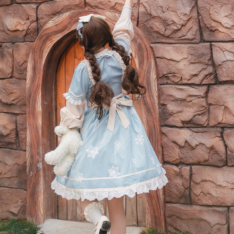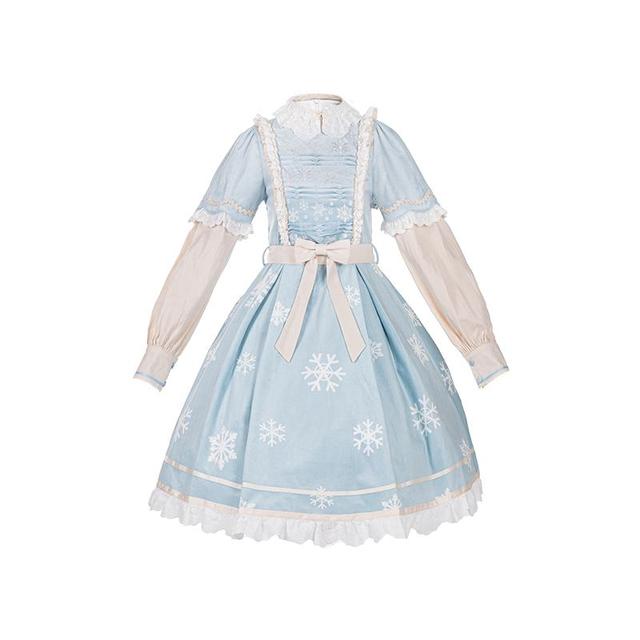 Looking for a dress that will make you stand out from the rest? Look no further than the Kawaii Printed Pleated Fake Two Pieces Set Lolita Dress! This unique and stylish dress is perfect for any fashion-savvy girl. Made of high-quality materials, it is sure to be comfortable and durable. The Snowflake printed pleated design is eye-catching and sure to turn heads.