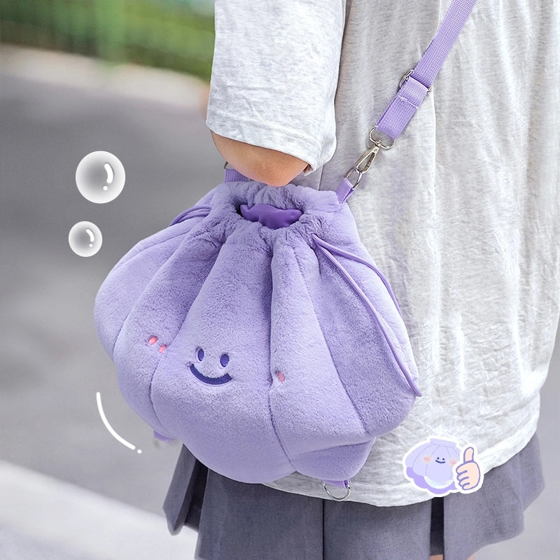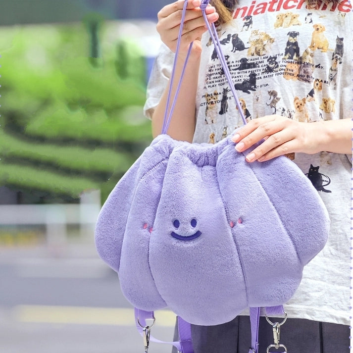 Kawaii Purple Rare Clams Plush Backpack: Embrace cuteness with this lightweight, spacious shoulder bag. Perfect for travel and everyday adventures!