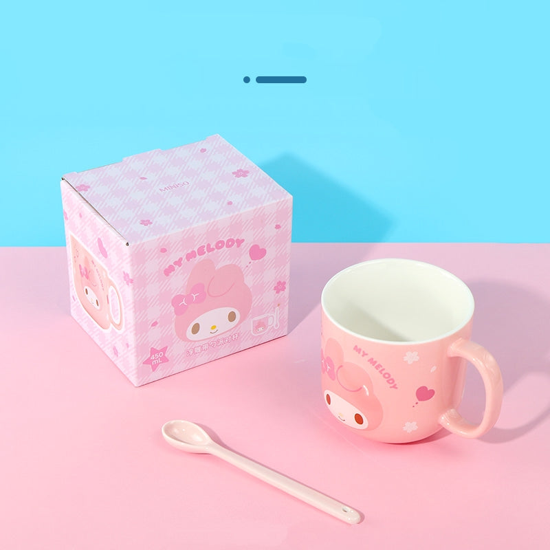 Product Name: Sanrio Characters Embossed Spoon Party Cup Net content: 450ml Product styles: Kuromi, Cinnamonroll, My Melody Product material: reinforced porcelain How to use: Please wash with warm water and neutral detergent before first usePackage Includes: