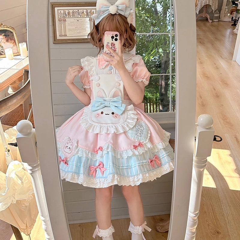 Kawaii Soft Girl Style Pink Blue Lolita Dress