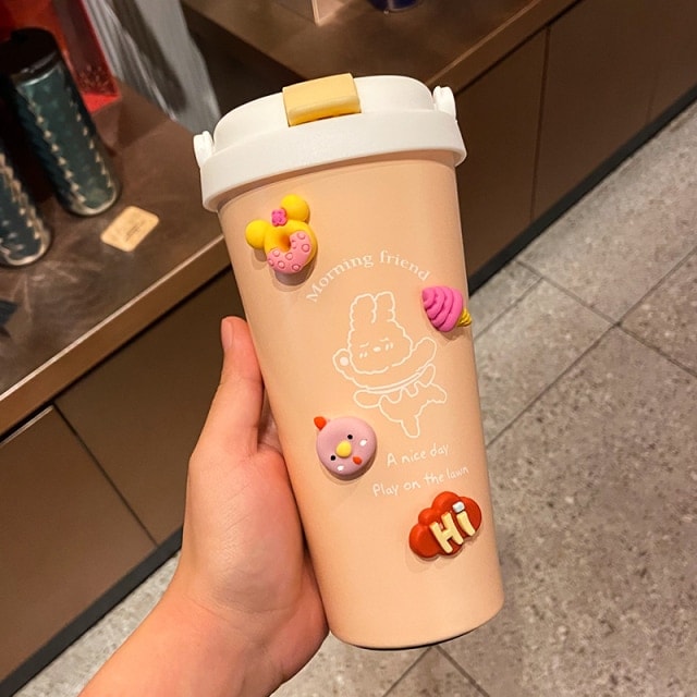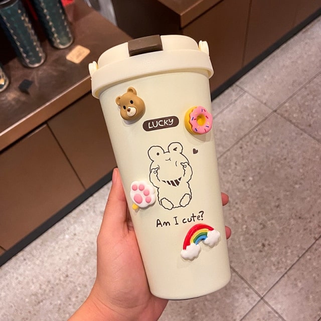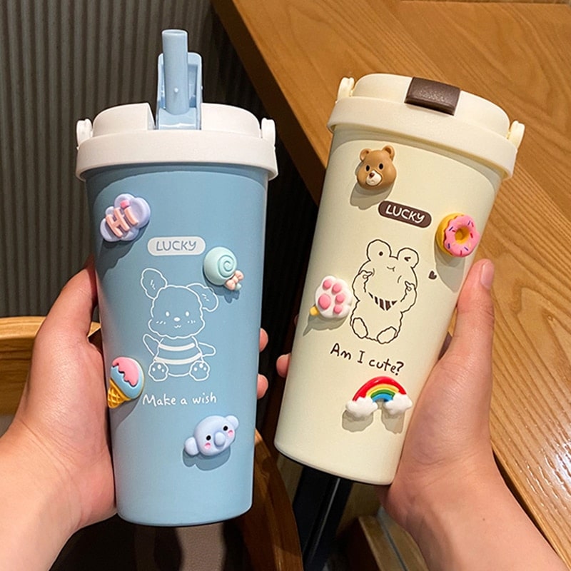 This 500ml Solid Color Cartoon Thermo Water Bottle is made of stainless steel and is kawaiily insulated. It's perfect for coffee, bubble milk tea, juice, and other drinks. The double-wall insulation helps to keep your drinks hot or cold for a longer time. The 3D sticker makes the bottle more beautiful and unique.