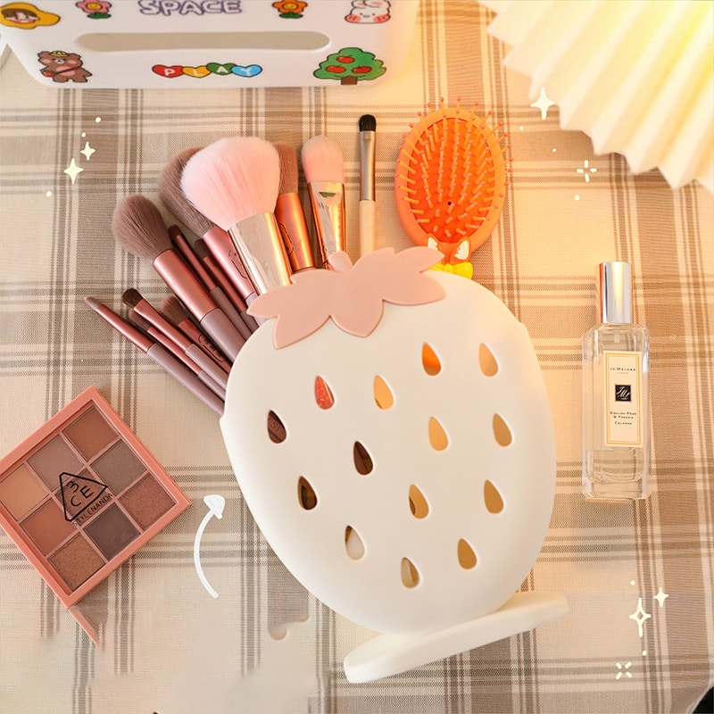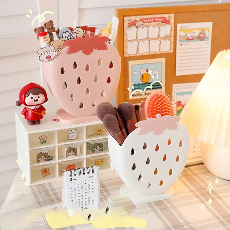This Kawaii Strawberry Divided Grid Pen Holder Desktop Organizer is perfect for organizing your desk. The divided grid design is perfect for holding your pens, pencils, or makeup brushes. The cute strawberry design is sure to brighten up your day.
