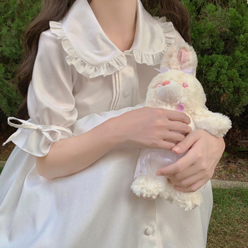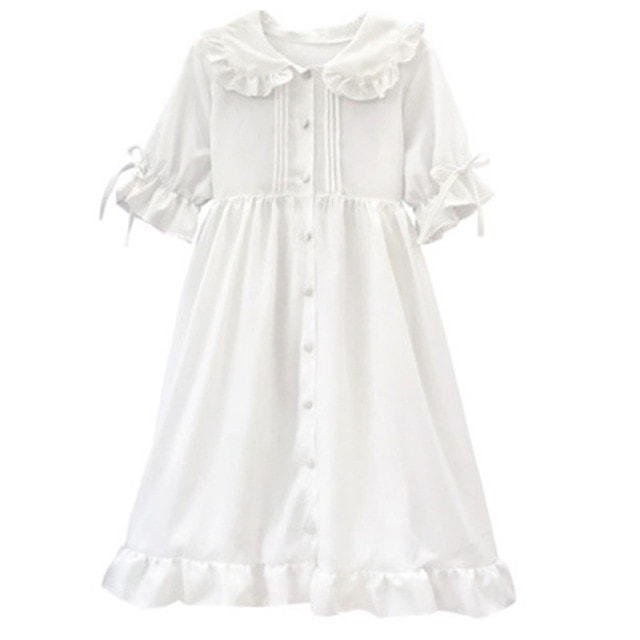 This is the perfect dress for this sunny weather! Get into that summer mood with these Kawaii Lolita Dresses For Teens that will keep you comfortable in any event. You can wear them to school, at the mall, out with friends, or just lounging around. Made of light poplin fabric and soft cotton it has a Peter Pan collar and lacy trim at the neckline. The skirts are so cute with an all-over lace overlay.