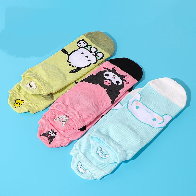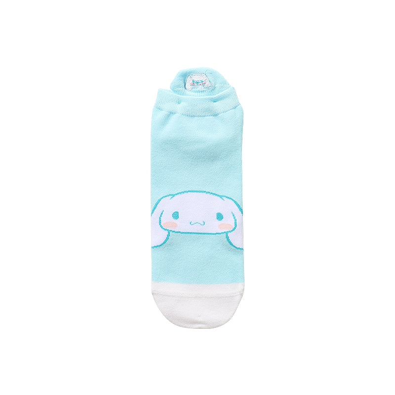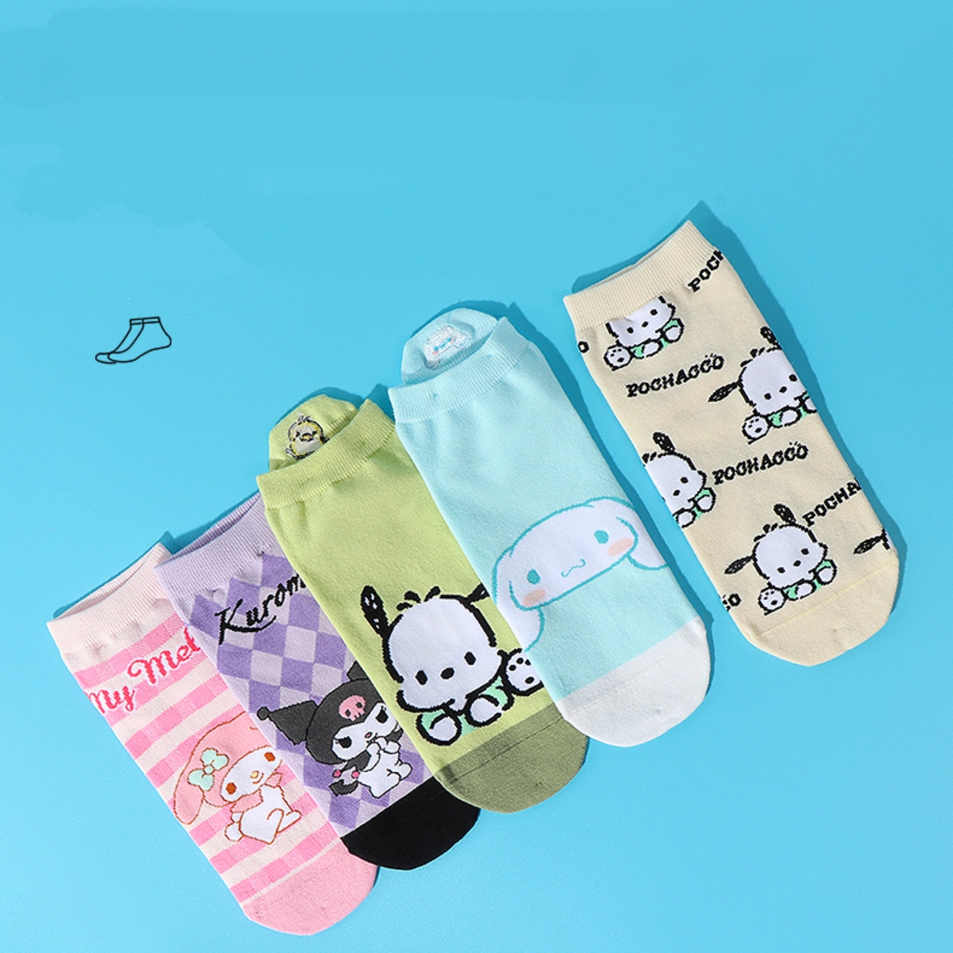 Step into a world of cuteness with our Kawaii Summer Sanrio Character Socks! These adorable socks are the perfect way to add a touch of whimsy to your summer wardrobe. Featuring beloved Sanrio characters such as Cinnamoroll, My Melody, Kuromi, and Pochacco, these Kawaii socks are sure to bring a smile to your face every time you slip them on. Made from a thin and breathable fabric, they are ideal for keeping your feet cool and comfortable during those hot summer months. Whether you're a student or simply someone who appreciates cute fashion, these Kuromi socks are a must-have addition to your collection. With sizes ranging from 22-24, finding the perfect fit has never been easier. Treat yourself or surprise someone special with these delightful Sanrio character socks and let the fun begin!