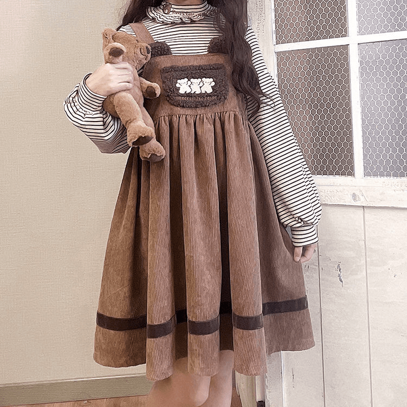 Looking for a unique and adorable dress that will make you stand out from the rest? Look no further than this Kawaii Sweet Bear Embroidery Lolita Dress! This vintage-inspired lolita dress is made of soft corduroy fabric and features an embroidered sweet bear on the skirt. It also has a plush pocket for added cuteness. The strap design gives it a touch of Japanese flair.