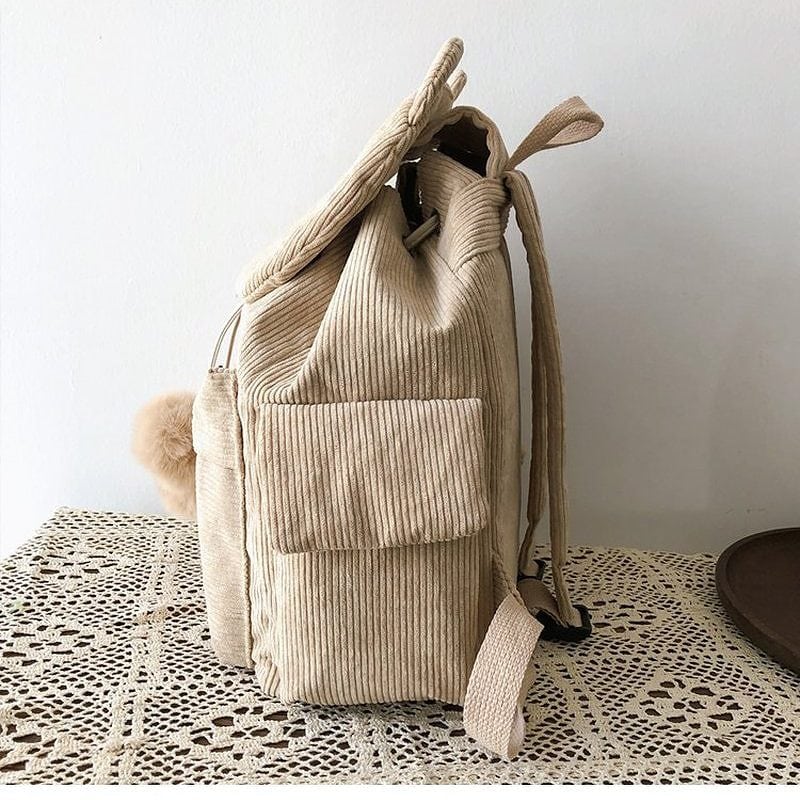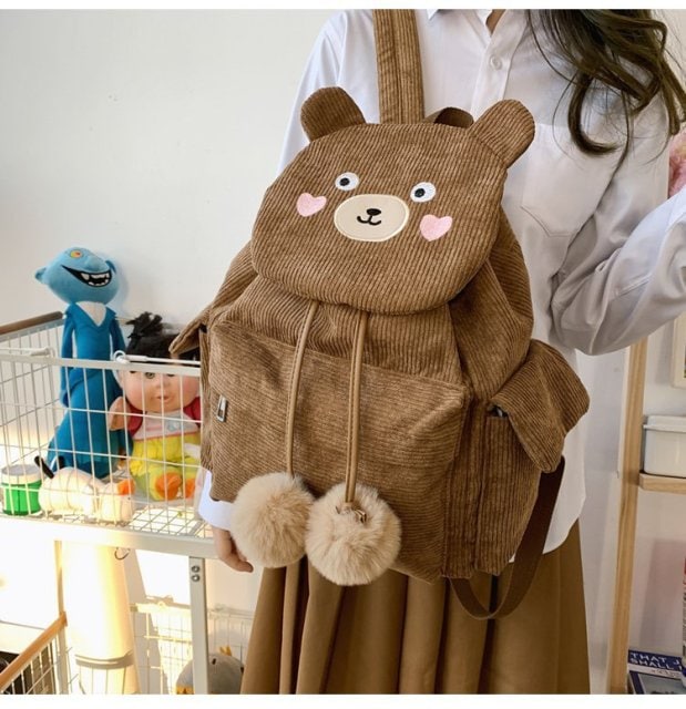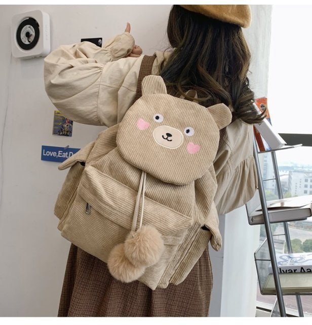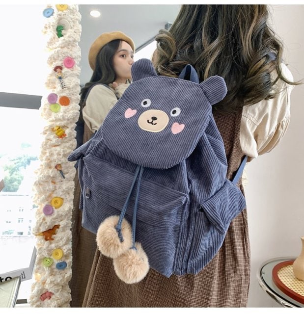 Every girl needs a cute Sweet Cartoon Bear Backpack. This one is super cool and has the kawaii bear on it. It's corduroy, so if you're traveling in autumn or winter, your back won't get sweaty! You can fit all your essentials in here like your water bottle (or juice box), snacks, laptop, and school supplies.