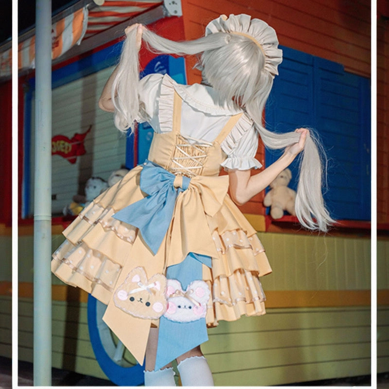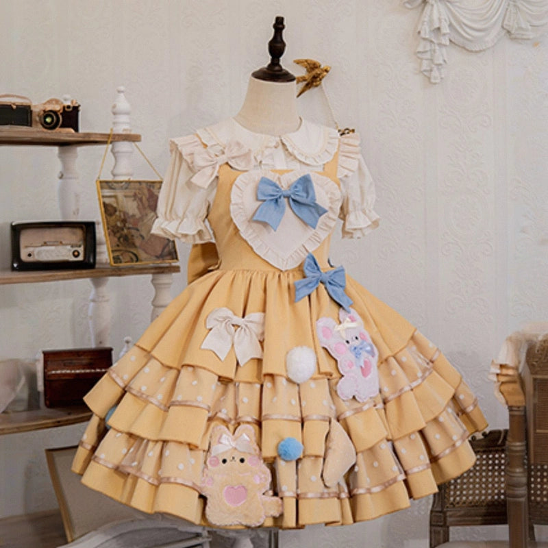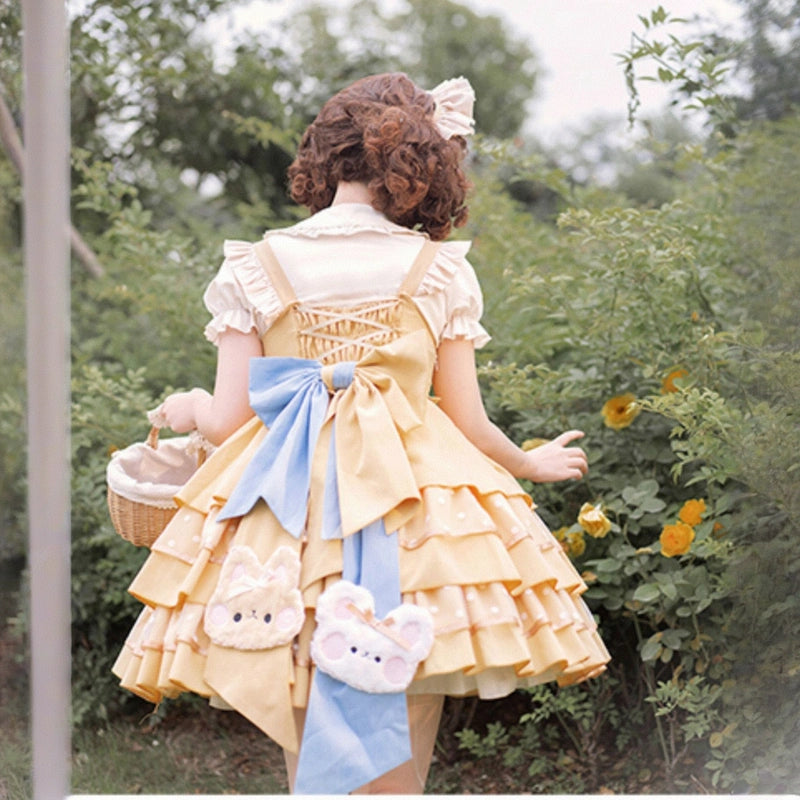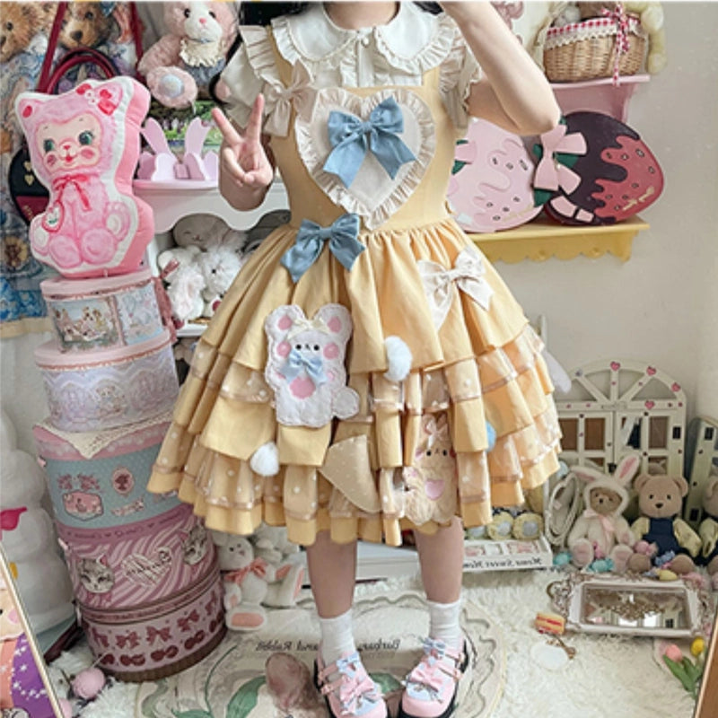 Kawaii Yellow Cartoon Bear Embroidery Lolita JSK Dress