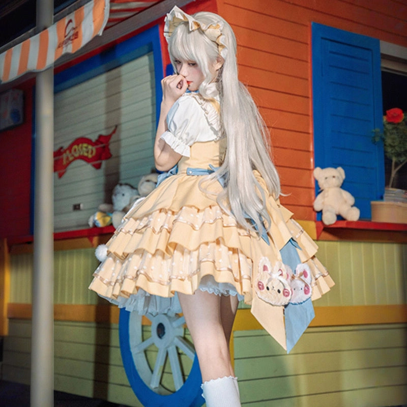 Elevate your wardrobe with the Kawaii Yellow Cartoon Bear JSK Dress! Adorable embroidery and stretchy fabric make this Lolita dress a seasonal favorite in sizes S, M, L.