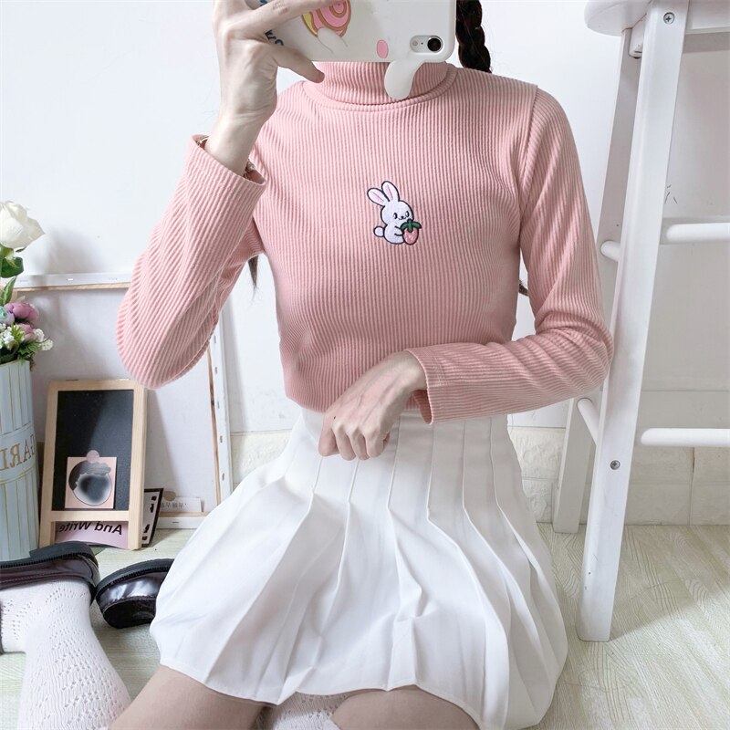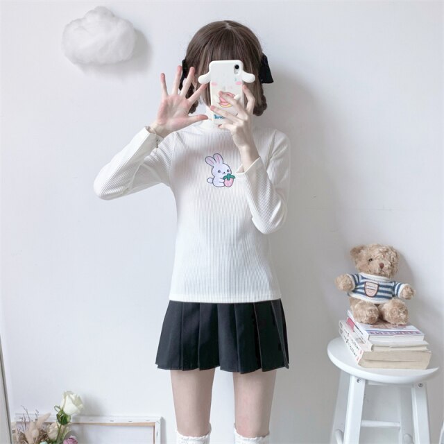 Endlessly cute and perpetually popular, our Korean Cute Rabbit Knitted Tops features a soft white fabric, a round neckline, long sleeves, wide ribbed cuffs, and a graphic on the chest. With its kawaii design, it is perfect for any time of year from cold autumn evenings to warm summer parties.
