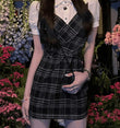 This Korean Fashion Slim Patchwork Plaid Dress is sure to turn heads! The shirt-style mini dress features a slim silhouette, cute bandage detail, and vintage preppy style. The patchwork plaid design is eye-catching and unique. perfect for summer days or nights out.