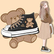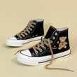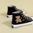 Korean Style Cute Bear Print High-Top Canvas Shoes are your perfect casual companion! Trendy black flats with a playful design. Shop now!