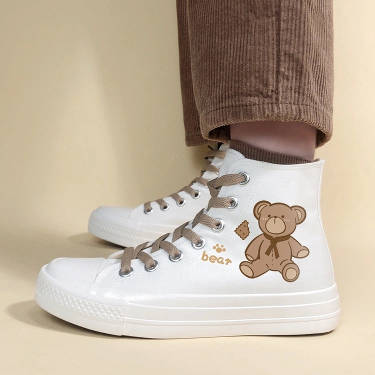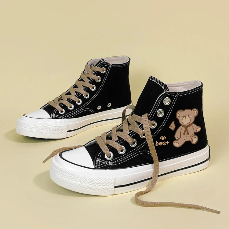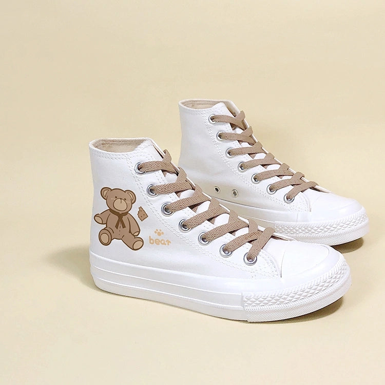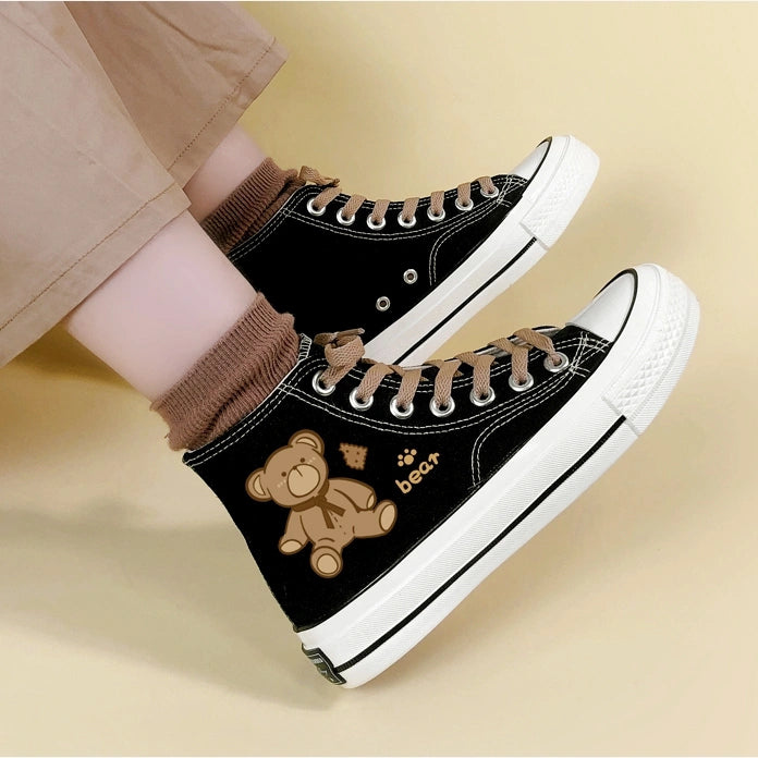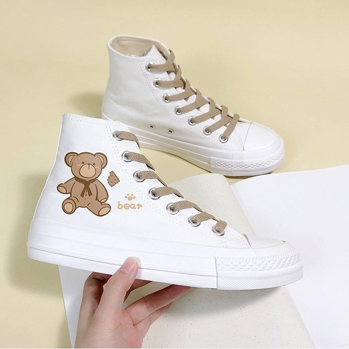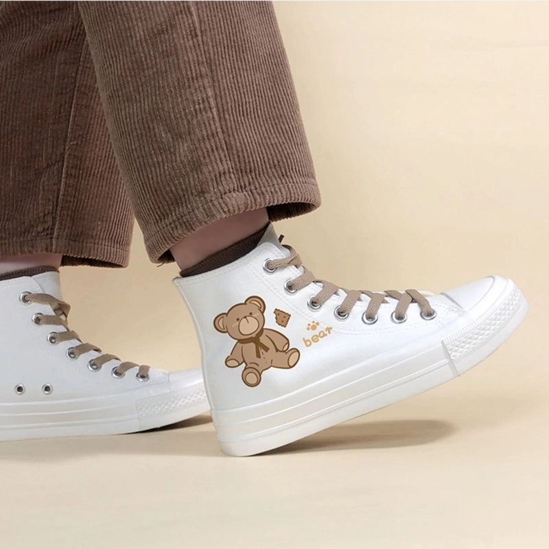 Korean Style Cute Bear Print High-Top Canvas Shoes
