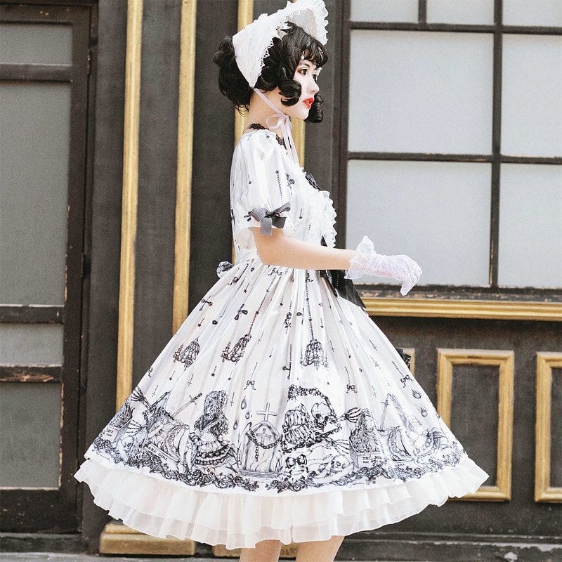 This Lolita dress is perfect for a party! The vintage style and kawaii look will make you feel like a princess. The short sleeve design is perfect for summer, and the bowknot on the front adds a touch of cuteness.