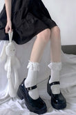 Introducing Lolita Sweet Lace Bowknot Socks! These Kawaii socks are perfect for the sweet and girly lolita fashionista. They are made of a soft cotton material and feature a pretty lace bowknot detail. They come in a versatile pure white color and are sure to add a touch of cuteness to any outfit.